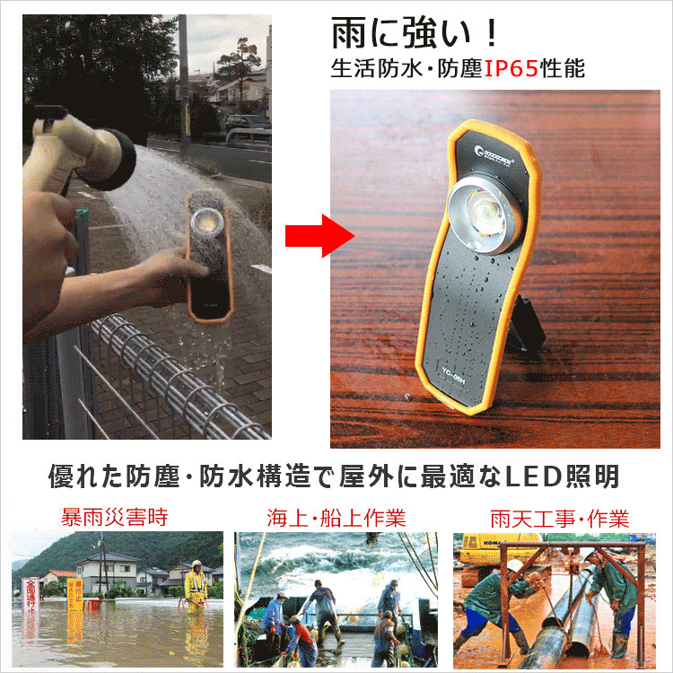 物置・倉庫作業、自動車整備、荷台への積み込み・積み下ろし作業、天井裏工事用照明などの作業灯として、