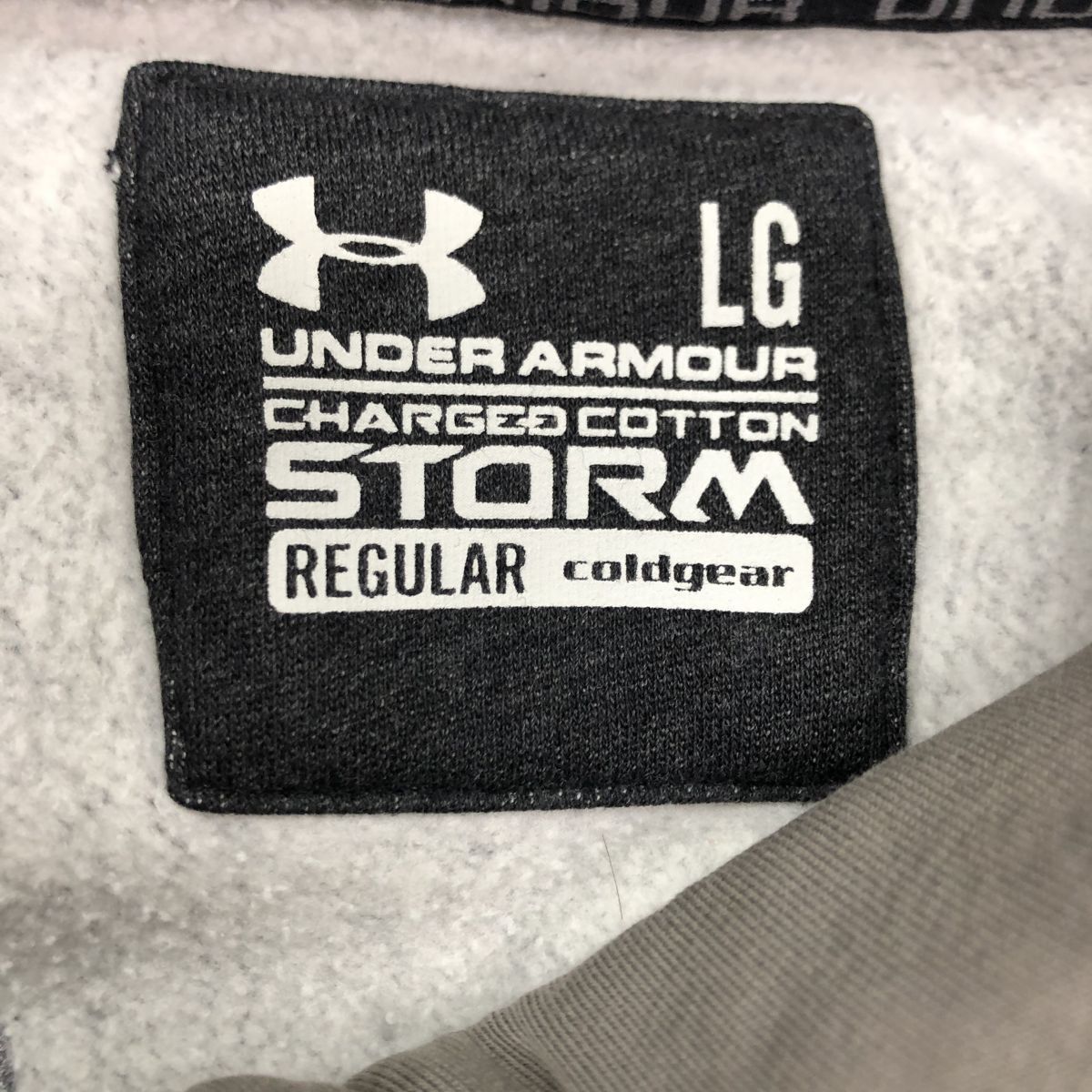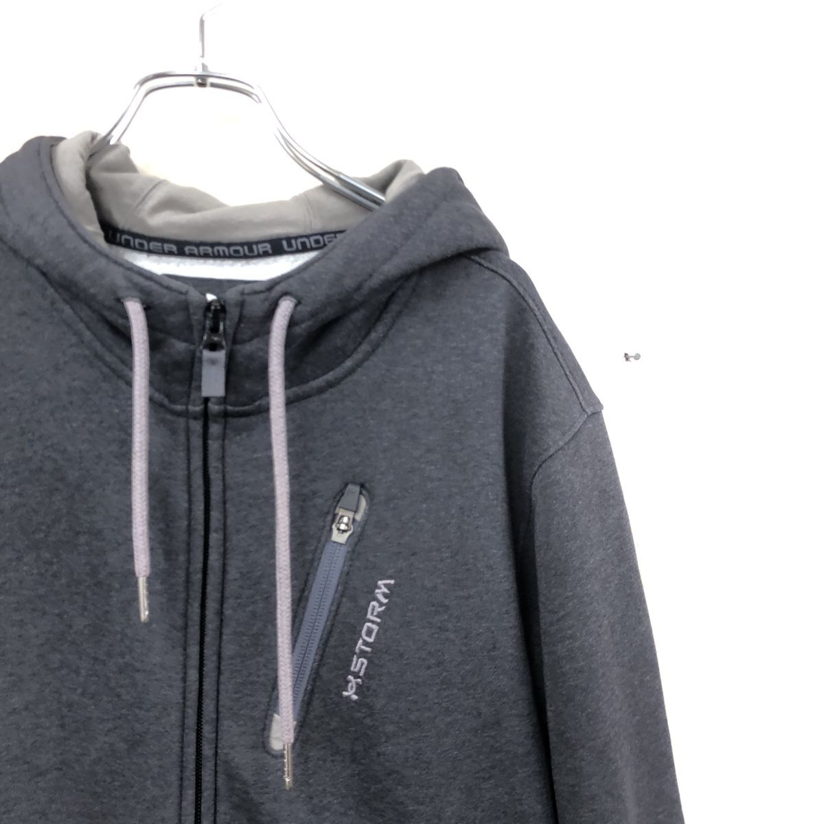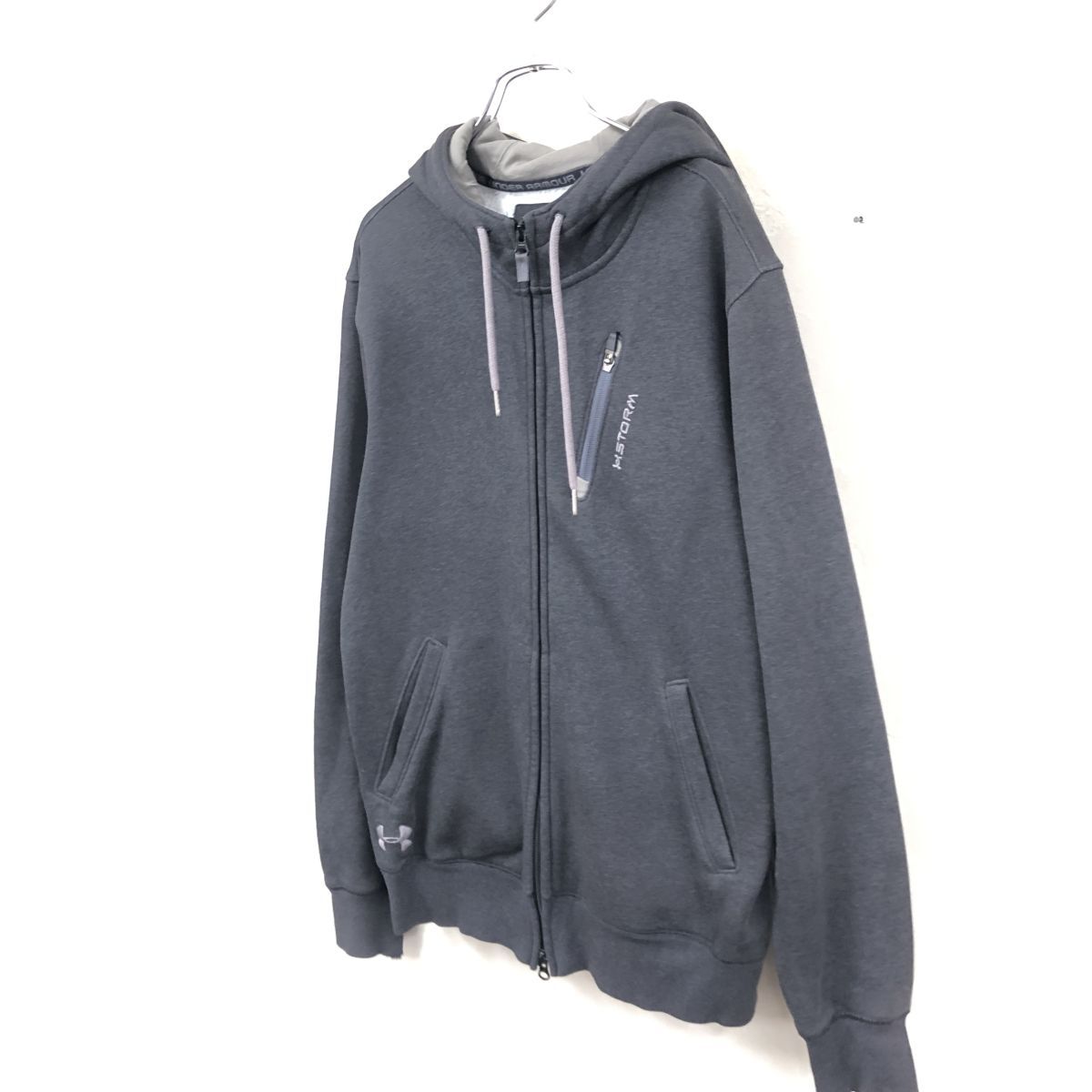 2N3119-O◆UNDER ARMOUR アンダーアーマー フルジップパーカー フーディ フード紐 刺繍ロゴ◆sizeL グレー コットン ポリエステル