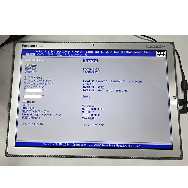 BIOS起動および液晶表示、タッチ操作、USBポート認識を確認しました。 特に異常は見られません。上記以外のデバイス、インターフェースは未確認です。 |