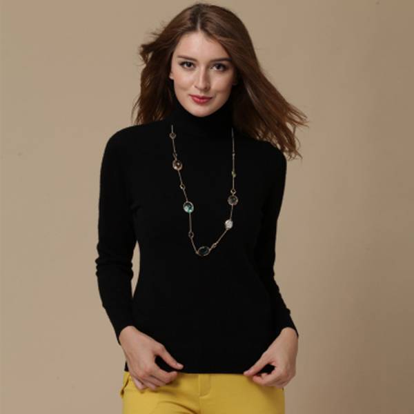 冬物着心地の良いカシミヤ混・レディースタートルネックセーターL 黒 | |||||||||||||||||||