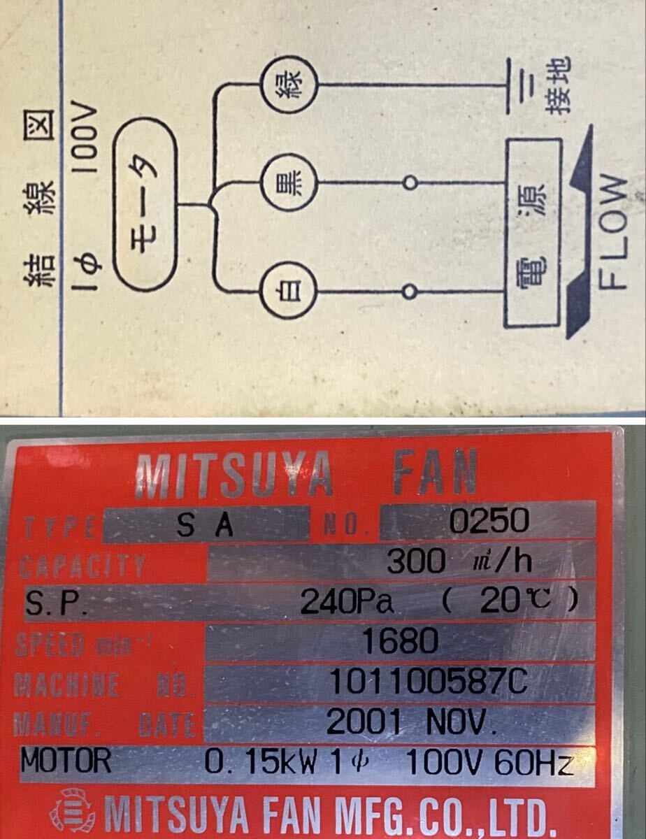 ミツヤ送風機 ダクトファン SA型 単相100V 口径25cm 動作確認