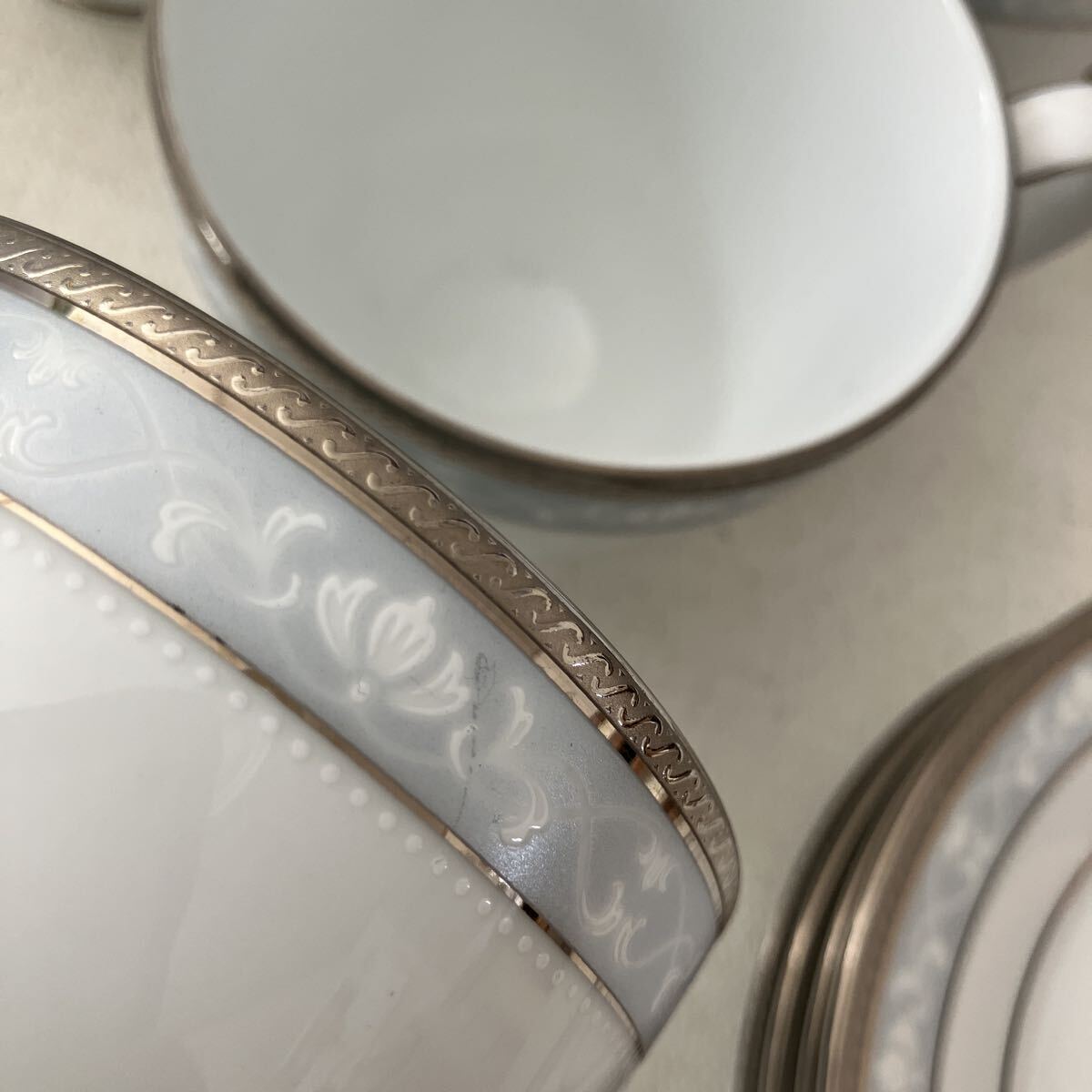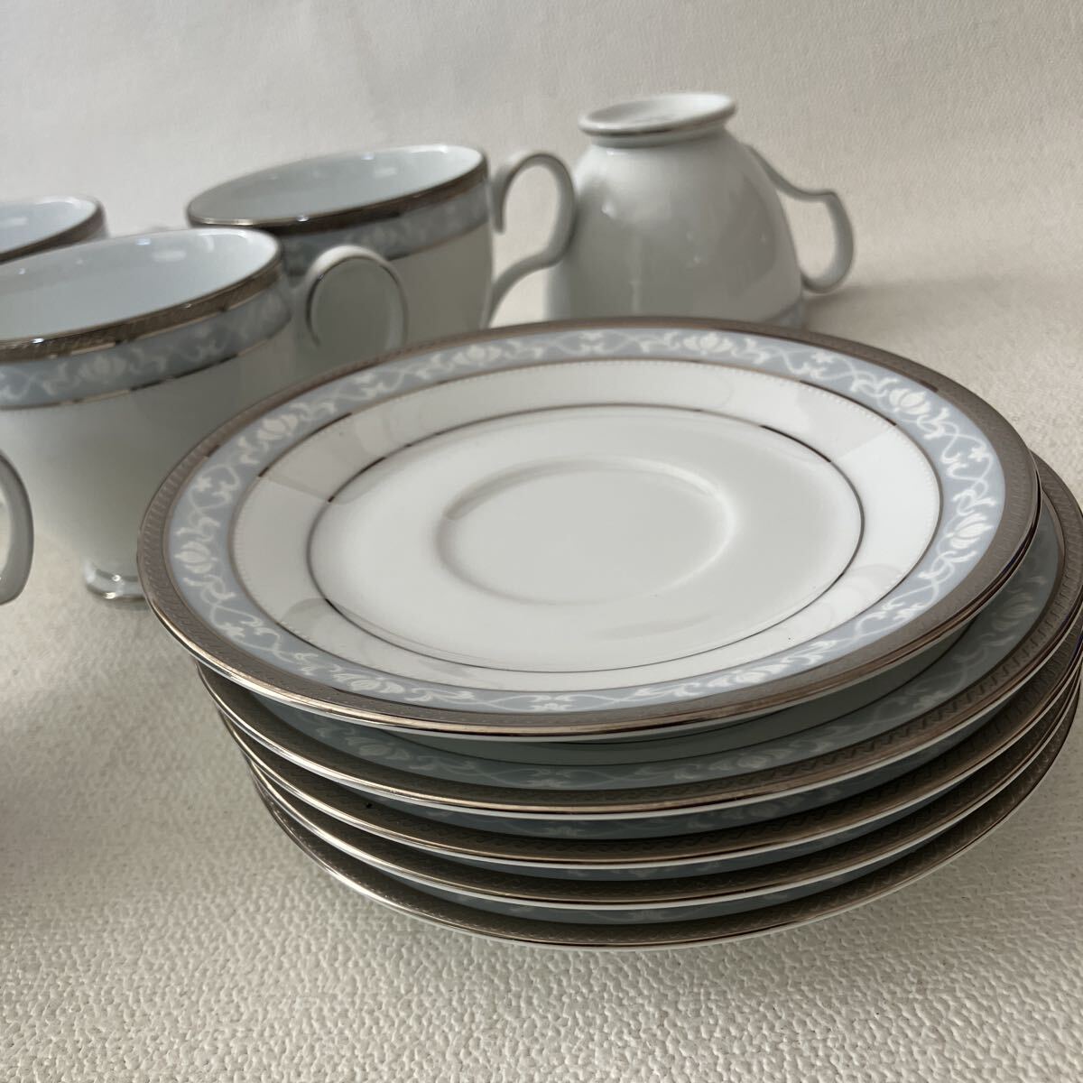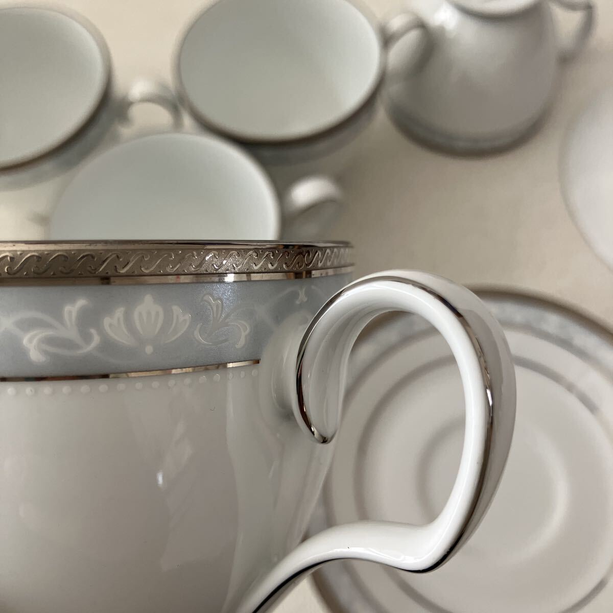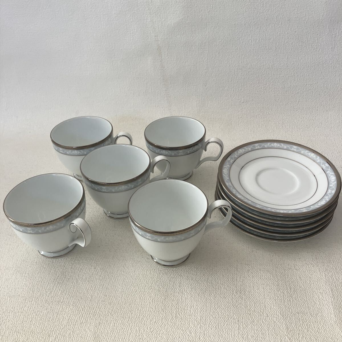 c200 80 Noritake ノリタケ ティーカップ ソーサー 5客セット HAMPSHIRE PLATINUM まとめて 洋食器 コーヒーカップ おしゃれ シンプル