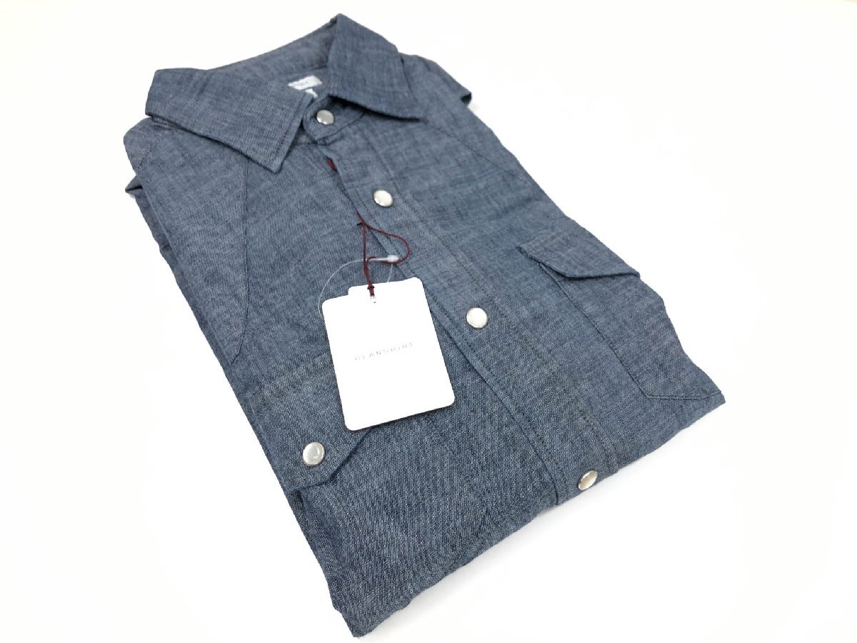 未使用【グランシャツ GLANSHIRT】5XCH00 G6003 810 定価40700円 シャンブレー 長袖 ウエスタンシャツ (メンズ) 40 インディゴ◇17GRS313◇