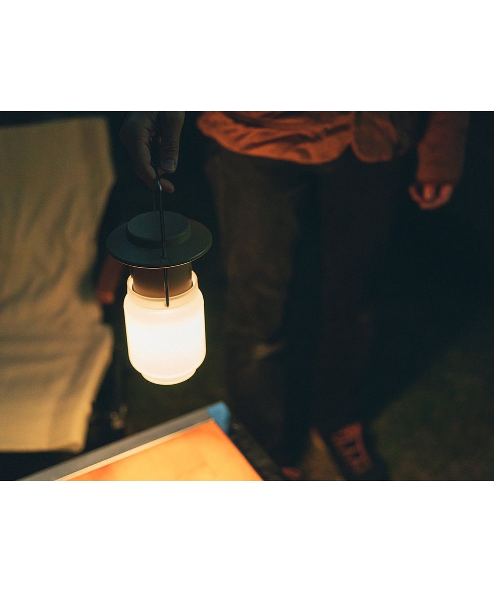スタンド型充電台の上で卓上照明として使用しつつ、キャンプでのランタンと同様いつでも好きな場所に持っていくことができます。