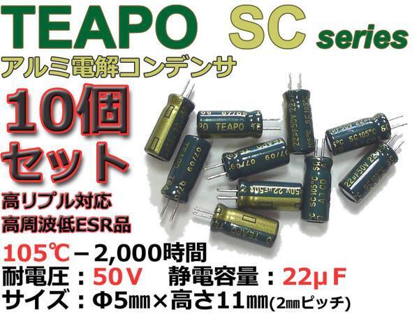 Teapo製 SC 50V/22μF 電解コンデンサ10個セット/低ESR高リプル