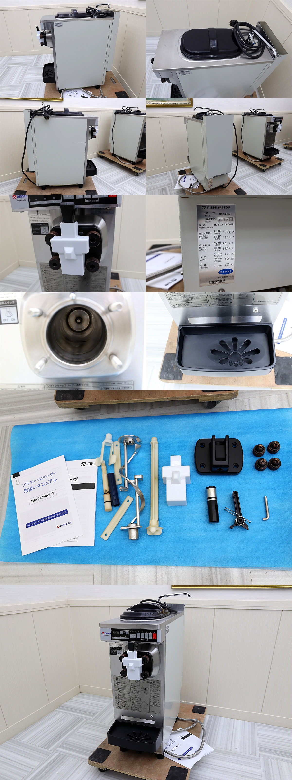| ★ご覧いただき誠にありがとうございます★ ■メーカー:日世 ■型式:NA-9424AE ■年式:2013年 ■付属品:取扱説明書 ■定格電圧:3相-200V (50/60Hz) ■清掃・動作確認済。動作保証品。日世の1番人気「スリムギア」の出品です。省スペースでも場所を取らず高性能!付属パーツも全て揃っています。 ミックスを入れての動作は店舗で行っておりますが、当店での動作確認は、タンクに水を入れての水漏れ確認、動作ボタン、殺菌ボタンの確認となります。 動作保証はさせて頂いておりますが、メーカー記載の製造能力は中古品の為バラツキがございますので参考程度にお願いいたします。 基本的には、購入されましたらメーカーでの取り付けを推奨いたします。最低でもホシザキさん等でお願いいたします。当店では取り付けや操作方法などのアドバイスは行っておりません。また、付属品はすべて揃っておりますが消耗品に関しましては一切保証できません。ご検討宜しくお願い致します! 仕 様 ■型名:NA-9424AE ■製造能力(100cc盛り)240個/時 ■シリンダー容量:2.0L ■ミックスタンク有効容量:4.0L ■寸 法:全幅:298mm 奥行:739mm 全高:924mm(本体802mm) ■製品質量:84kg ■電気定格/電 源:3相200V 50/60Hz ■最大消費電力/冷却時:1.8/2.1kW ■加熱時:2.1/2.2kW ■最大運転電流/冷却時:6.4/7.3A ■加熱時:7.2/7.6A ■定格出力/コンプレッサー:50W ■ダッシャーモーター:400W ■かくはんモーター:6W ■ファンモーター:32W×2 ■冷却方式:空冷 ■冷 媒:R404A 特 長 ■自動殺菌ソフトサーバー「スリムギア」は幅わずか298mm、卓上型なので、作業台の上などにも手軽に設置できる。壁にもぴったりつけられる構造だから、狭いスペースでもらくらく設置できる。またシルバーとブラックを基調にしたシックなデザインなので、オープンキッチンのお店でも、雰囲気を壊さず設置可能。パフェやデザートなど多彩なスイーツメニューを提供するカフェスタイルのお店にぴったり。設置場所を選ばないスリムボディを実現。オゾン破壊係数ゼロのHFC冷媒(R404A)を採用。200V・空冷式を採用。オートリターンハンドルを採用。 簡単操作で自動殺菌が可能。分解洗浄も週に一度でOK。フロント未装着時の誤動作を防止する「ダッシャーセーフティ機構」を搭載。取り出し時のロスを少なくする「リフレッシュ機構」を装備。 ●あとはすべて写真にてご審査願います。写真には写りきらない、よごれやダメージ、詳細部分の、記載ミスなどがもしあっても、その旨のクレームはご勘弁下さい。上記内容をご理解頂き、ノークレーム・ノーリターンでお願いいたしいます。 |