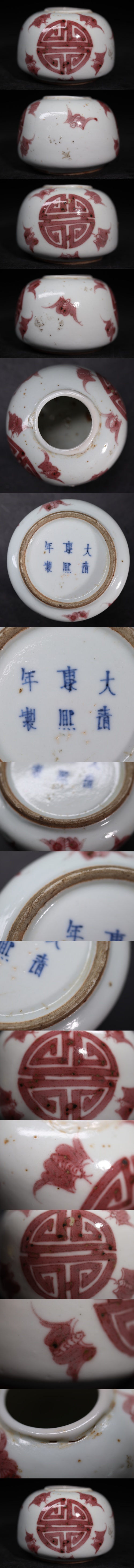| 大清康熙年製 底款 釉裏紅 蝙蝠紋 水孟 / 清 康熙 中国美術 書道具 硯滴 文房四宝 .G3632 |
