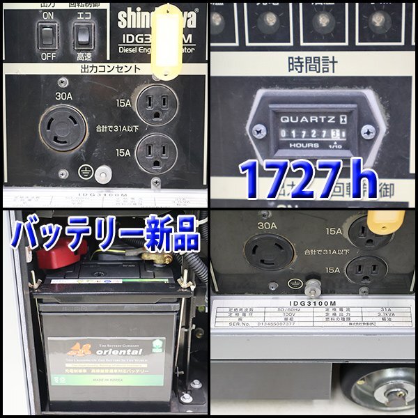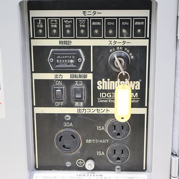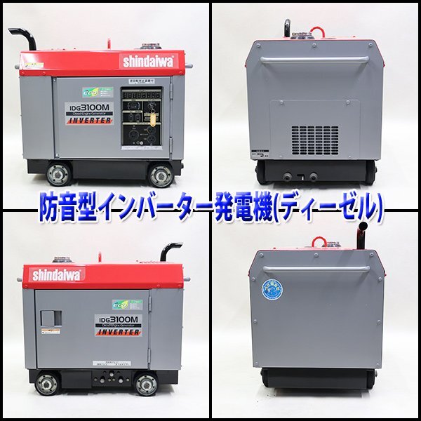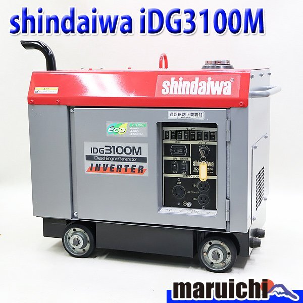 インバーター発電機 shindaiwa IDG3100M 超低騒音型 ディーゼル 軽油 50/60Hz 非常用 新ダイワ 建設機械 整備済 福岡発 売切り 中古 1170