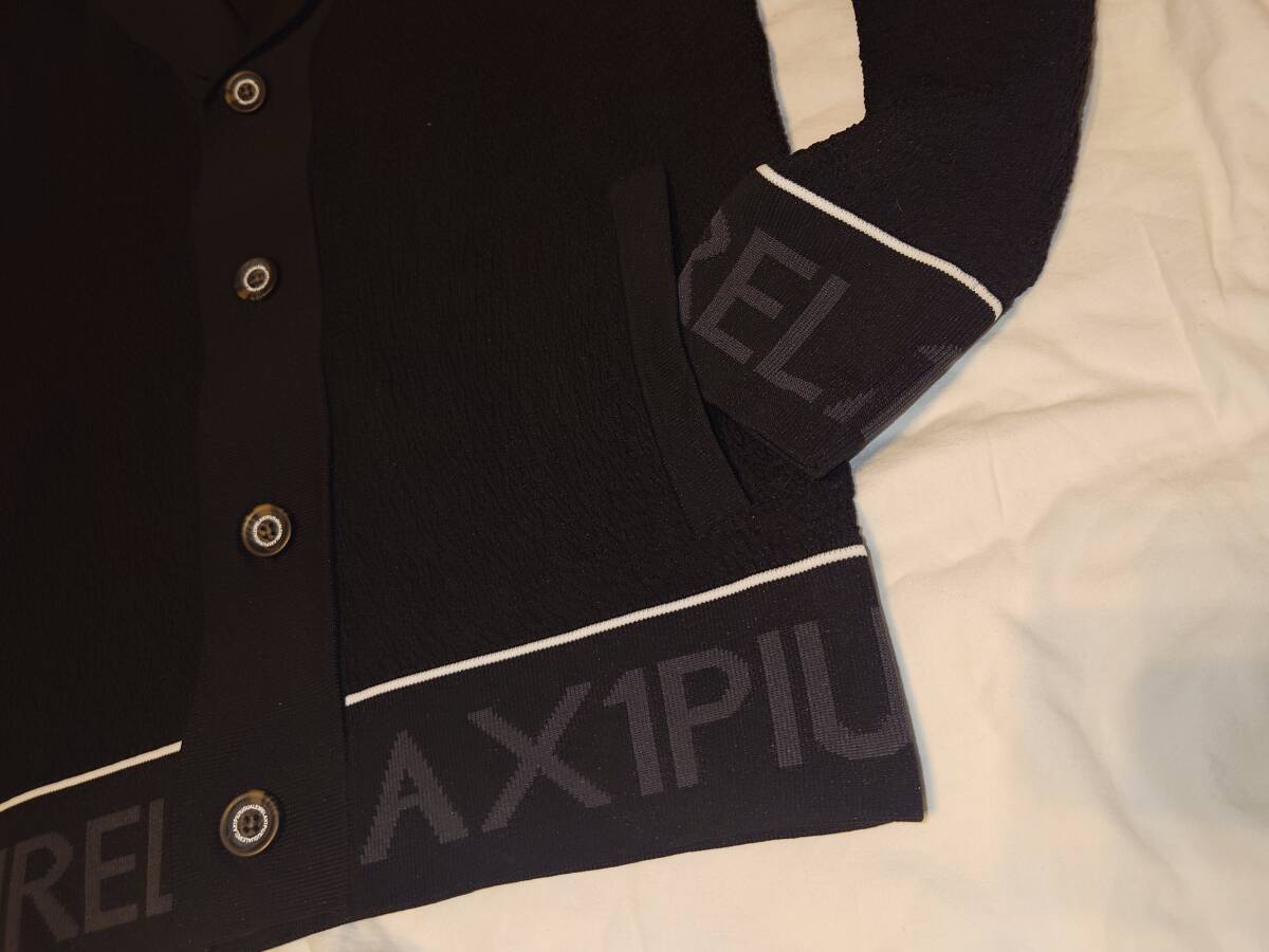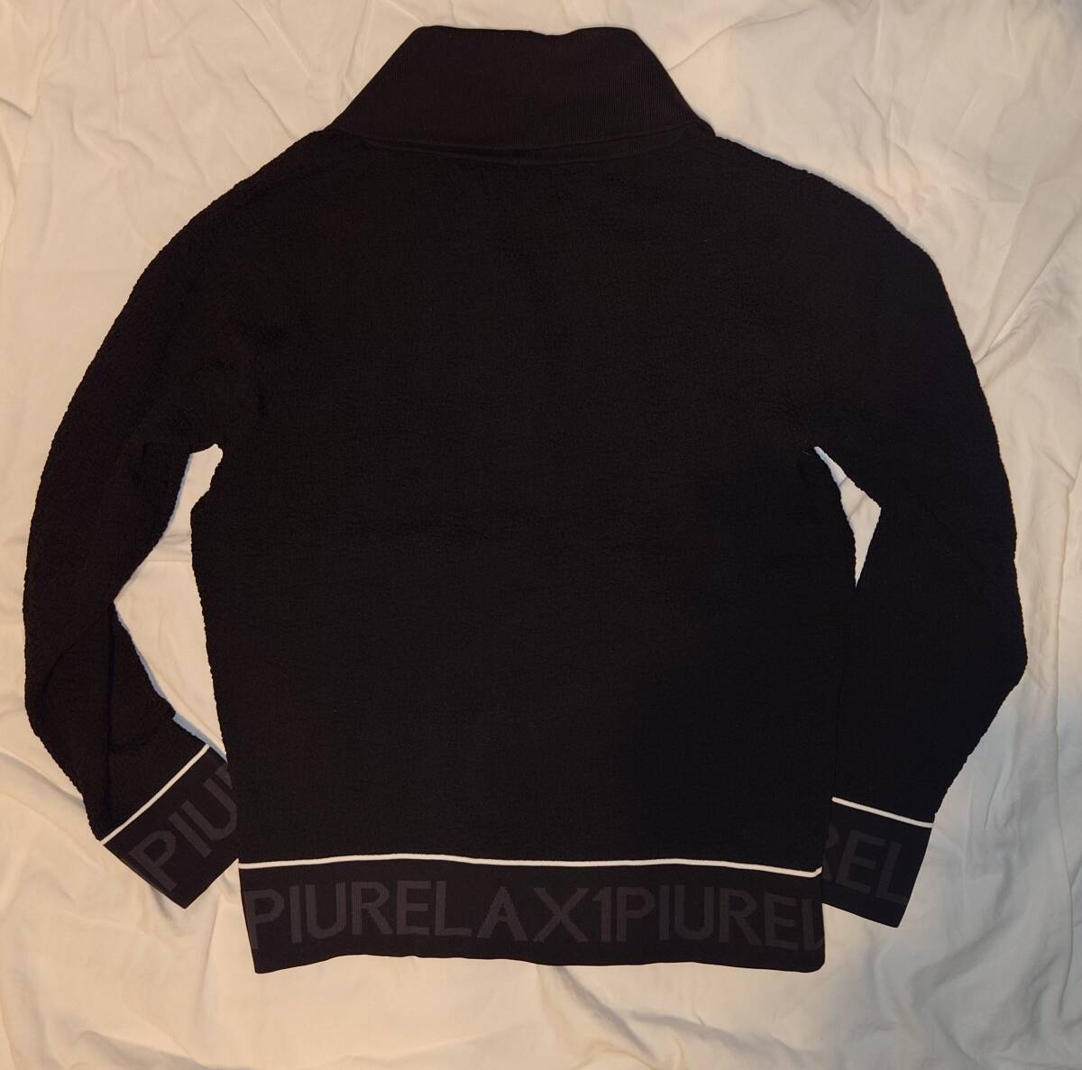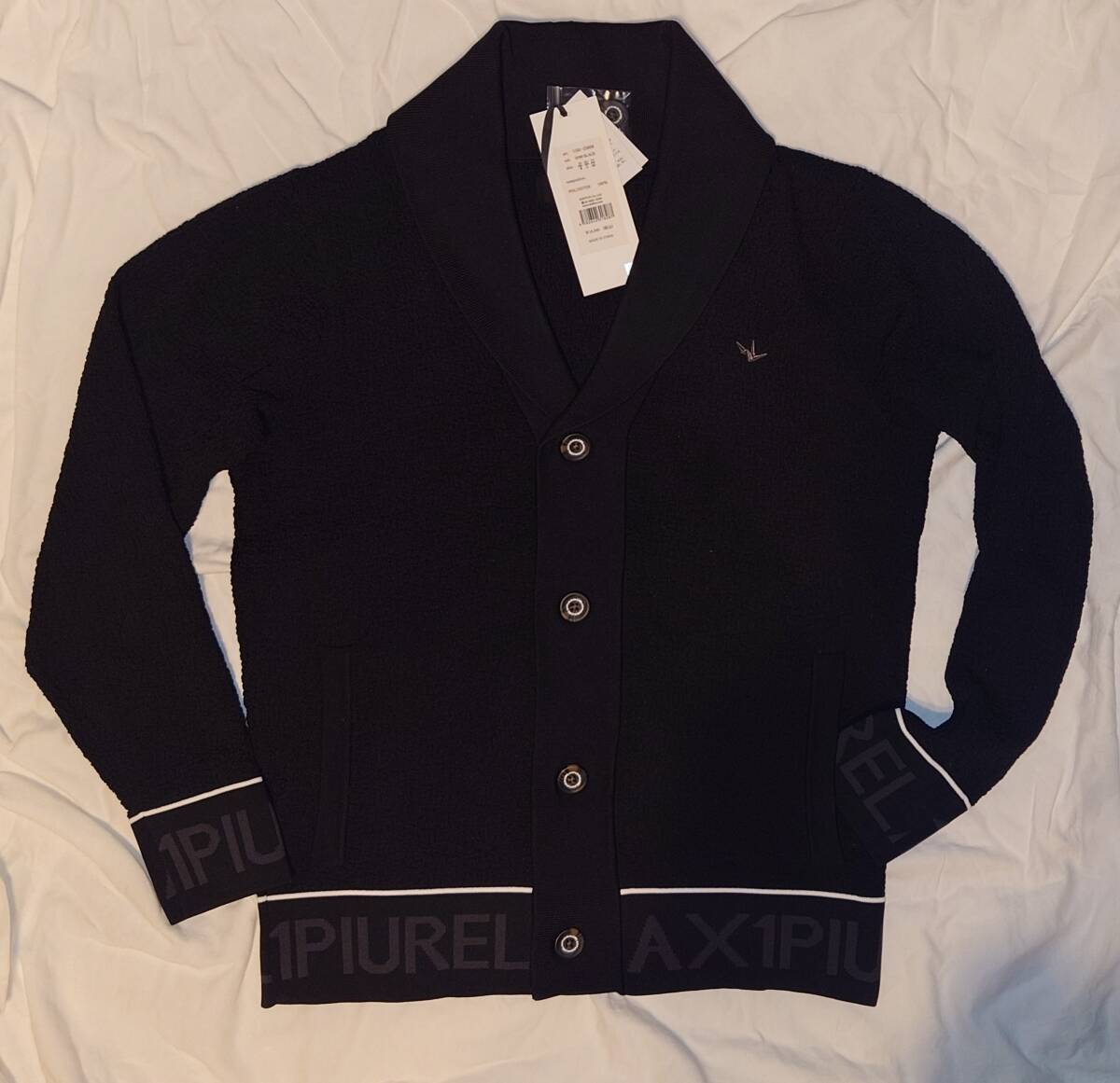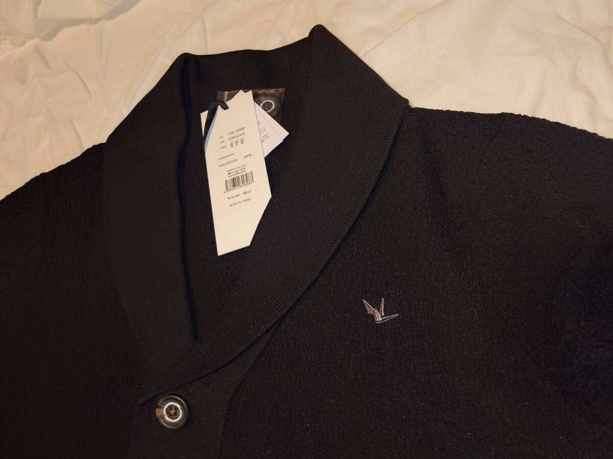 1PIU1UGUALE3 RELAX リブロゴジャガードニットジャケット M 黒 ジャージ感覚 ショールカラーusk-23009
