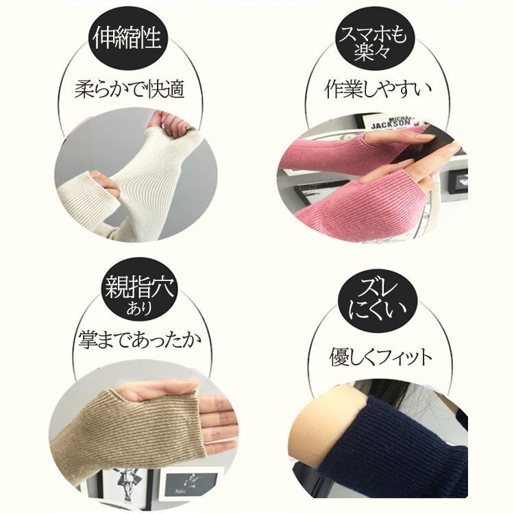 セット内容:アームウォーマー×1セット(左右)【ベージュホワイト親指穴あり】
