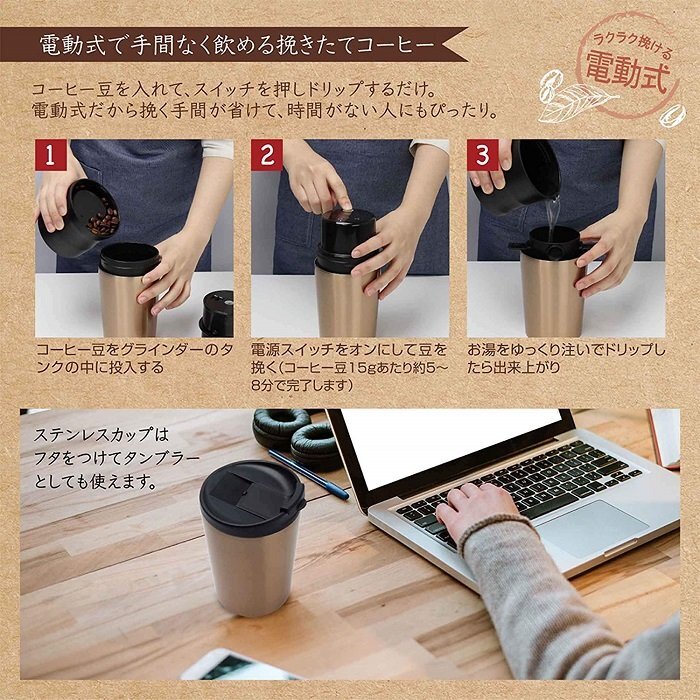 | マクロス 電動式 オールインワン コーヒーメーカー カフェラベル ブラック MEK-62 |