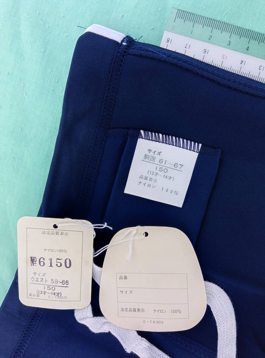 男子 未使用品 ボックス型スクール水着 150サイズ 6150 濃紺色+1本ライン ネイビー + ホワイト