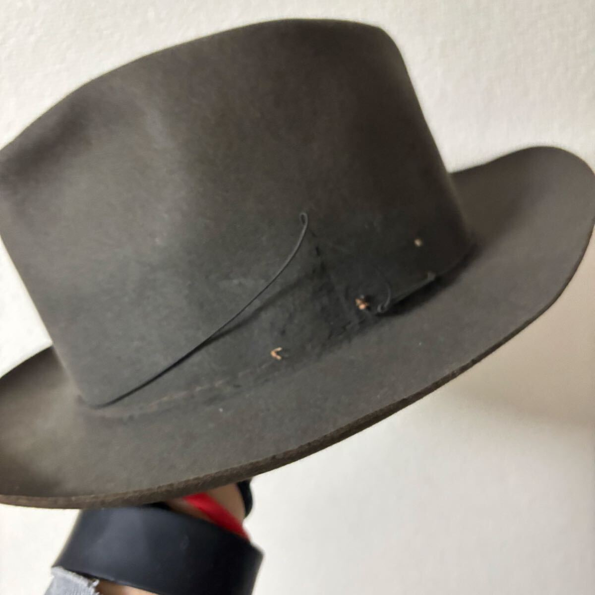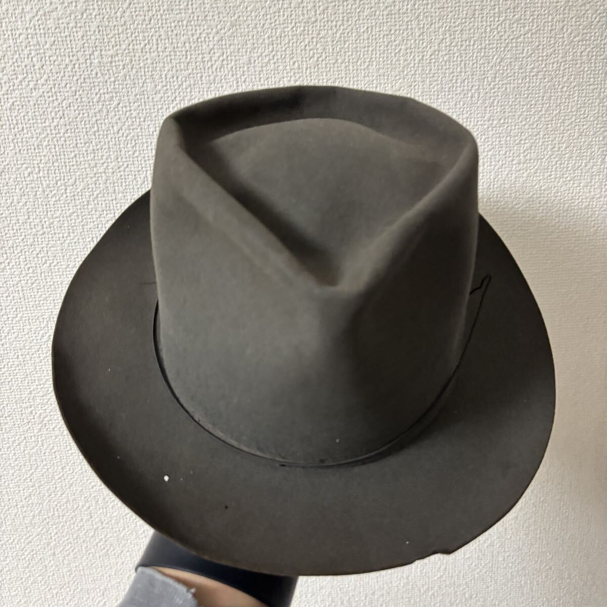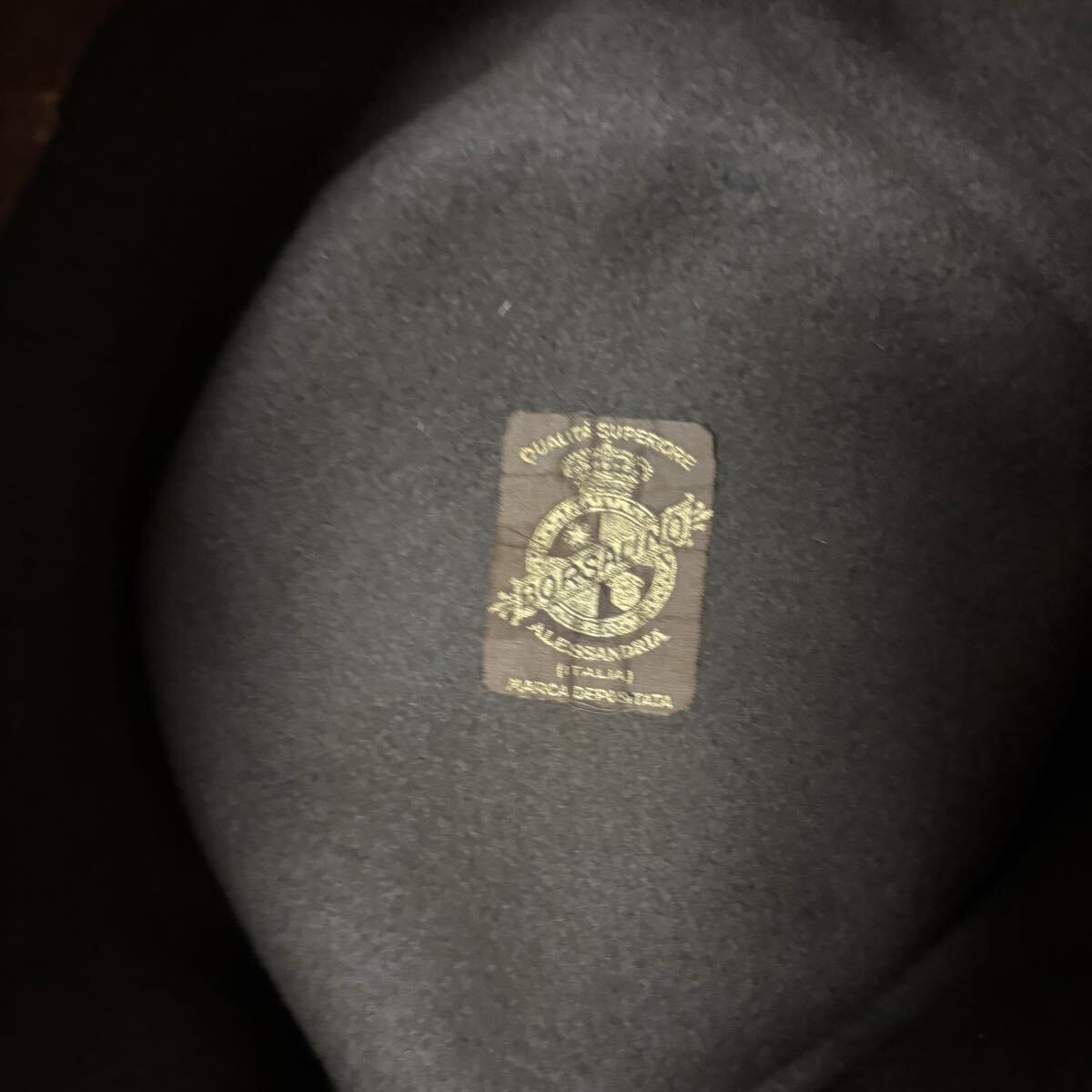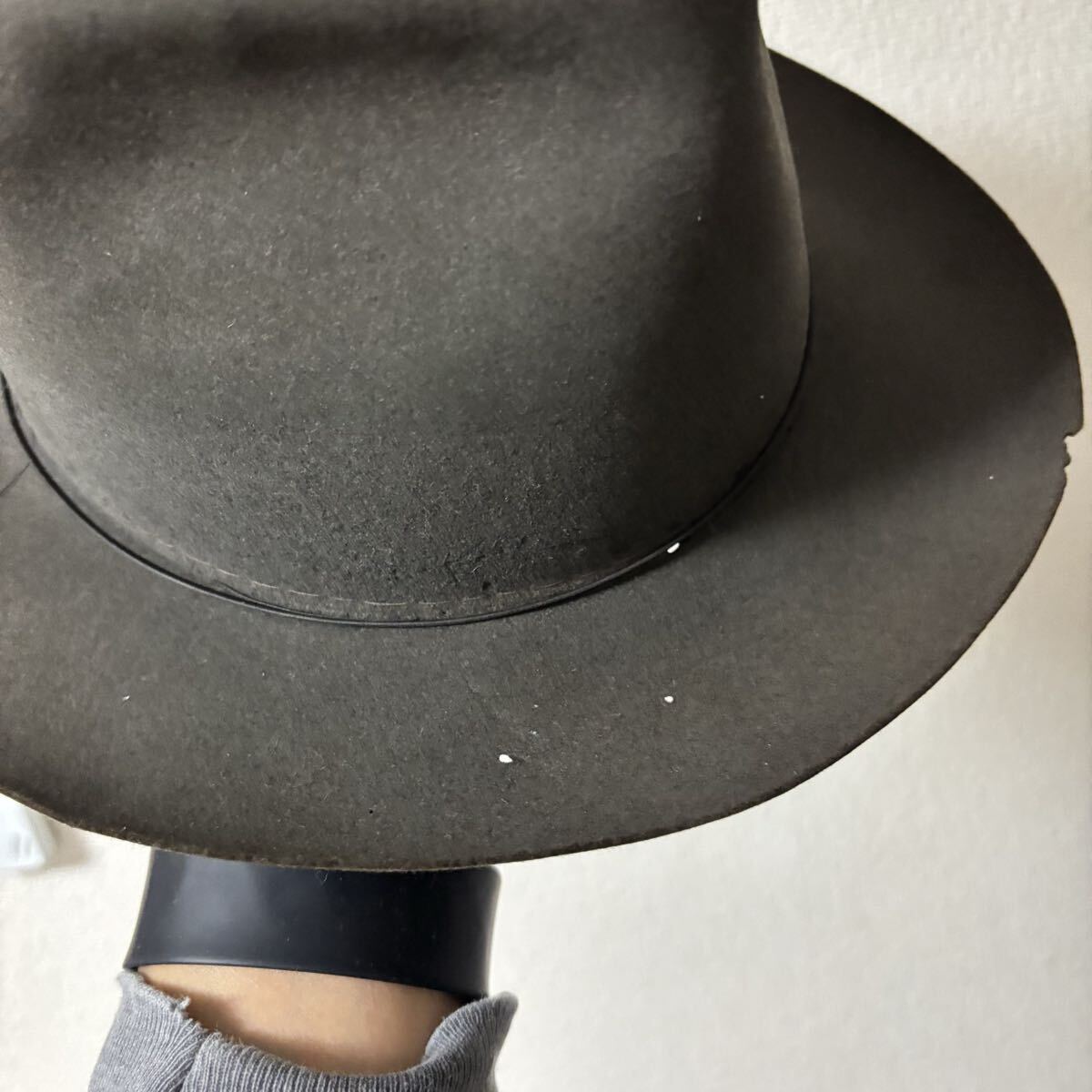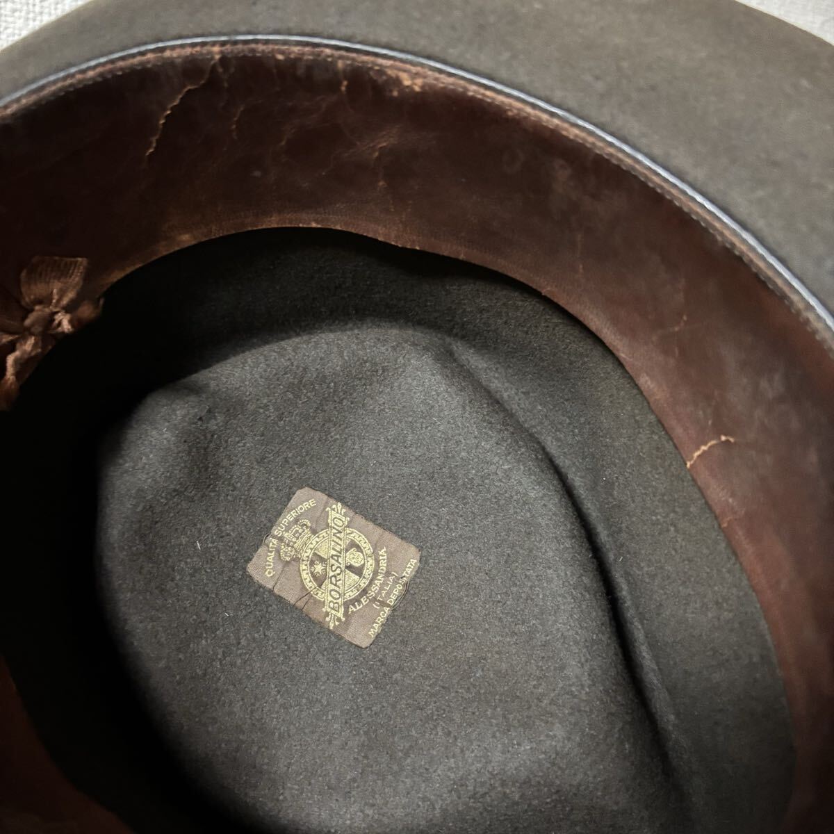 50s位のアイテムでダークブラウン系の深い色味で雰囲気あるアイテムですがダメージがありリボンも外れていてすべりにもひび割れ等好みが分かれる状態です。