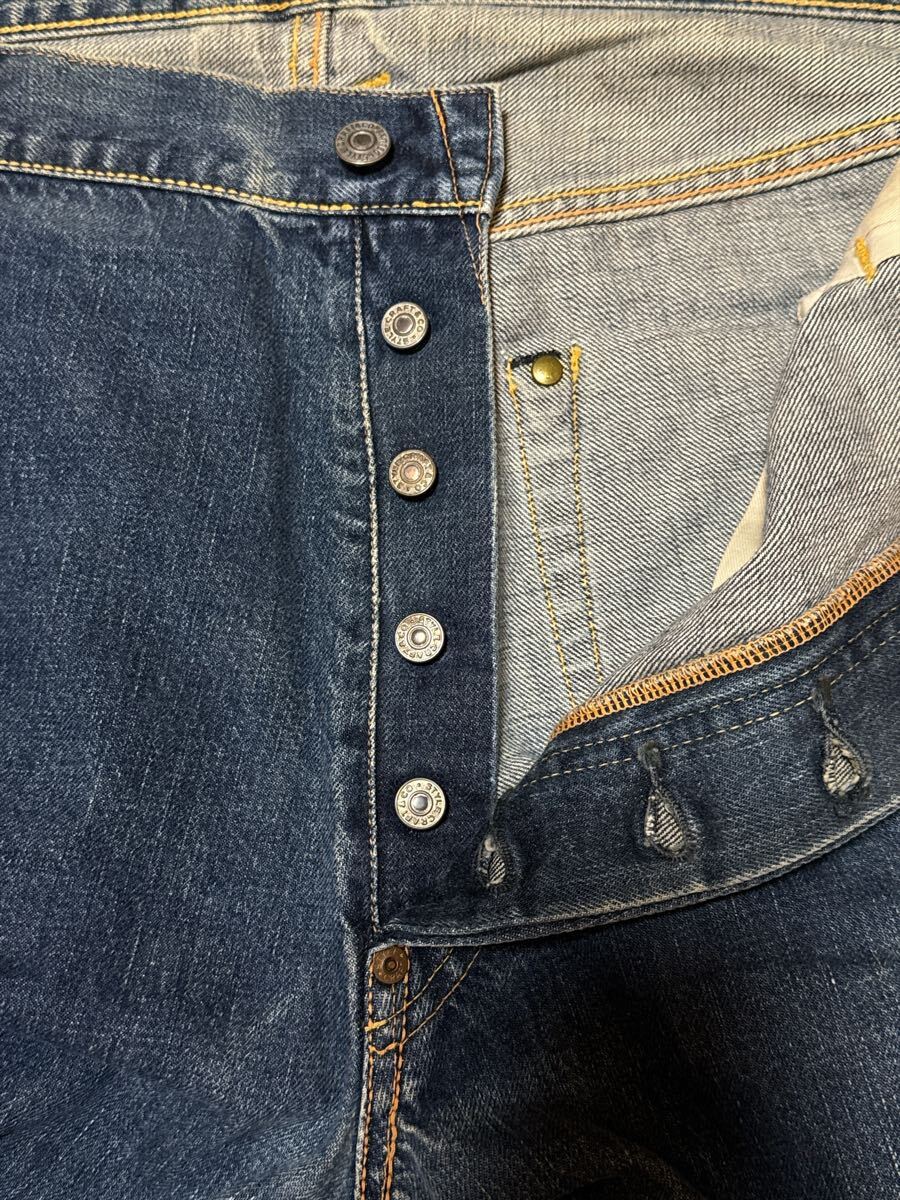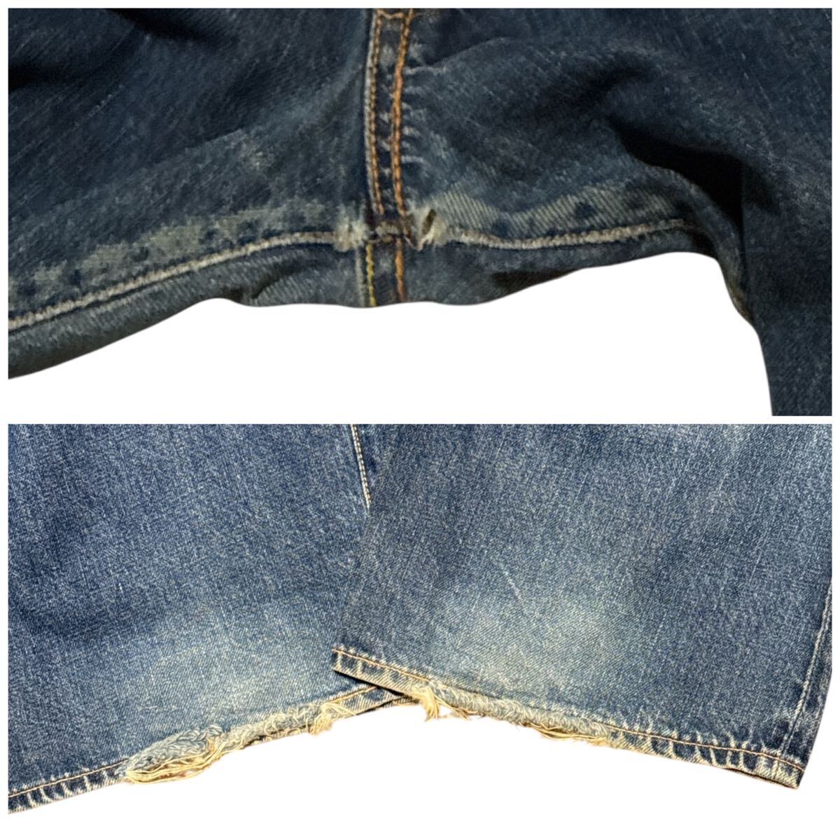 状態は、大きいダメージや目立った汚れはないですが、全体的に色落ち、毛羽立ち、スレがあります。パッチ、うちタグに掠れがあります。左右裾、股部分にスレ、ダメージがあります。各部ステッチ飛びがあります。新品ではないので、着用感は否めませんが、まだまだ使っていただけるかと思いますが、あくまでもユーズド品になりますので、神経質な方は入札はお控え下さい。