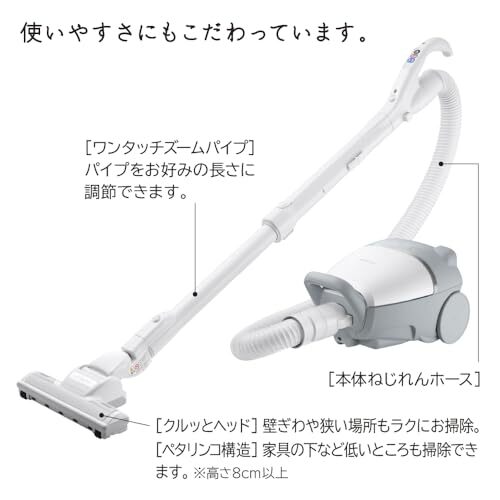 ヘッドが浮かずに家具の下の奥までお掃除できる。 [ぺタリンコ構造]