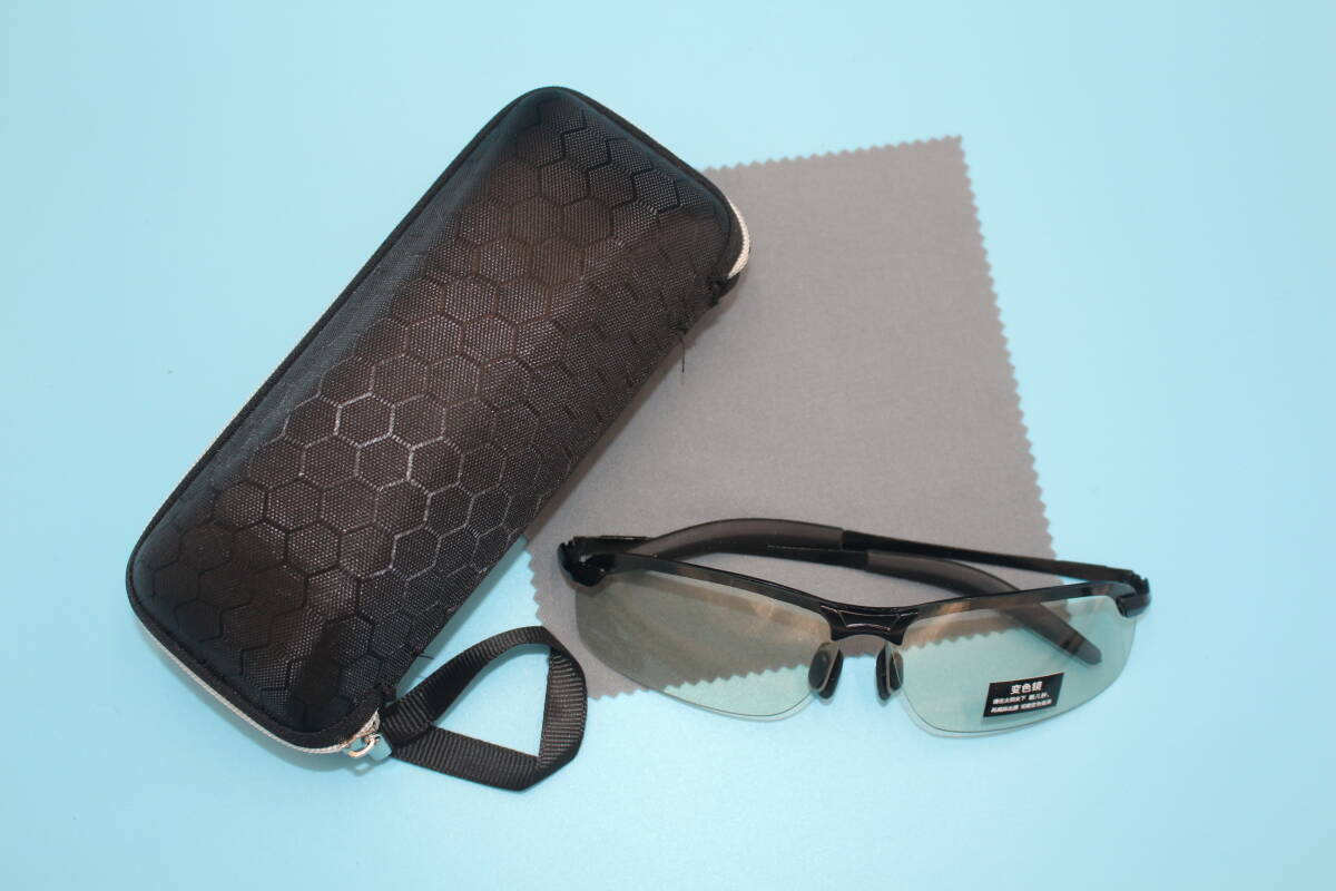 偏光 調光 サングラス ケース付 レンズ変色 UVカット ドライブ 日夜運転用眼鏡 釣り スポーツ メガネ ライトグレー めがねクロス付昼夜兼用