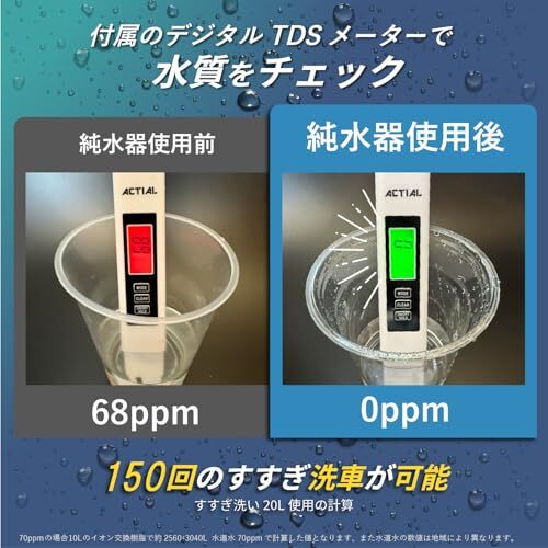 ACTIAL 純水器 イオン交換樹脂 洗車 10L TDSメーター 専用カバー付き 日本製 1年間保証付き 純水機R