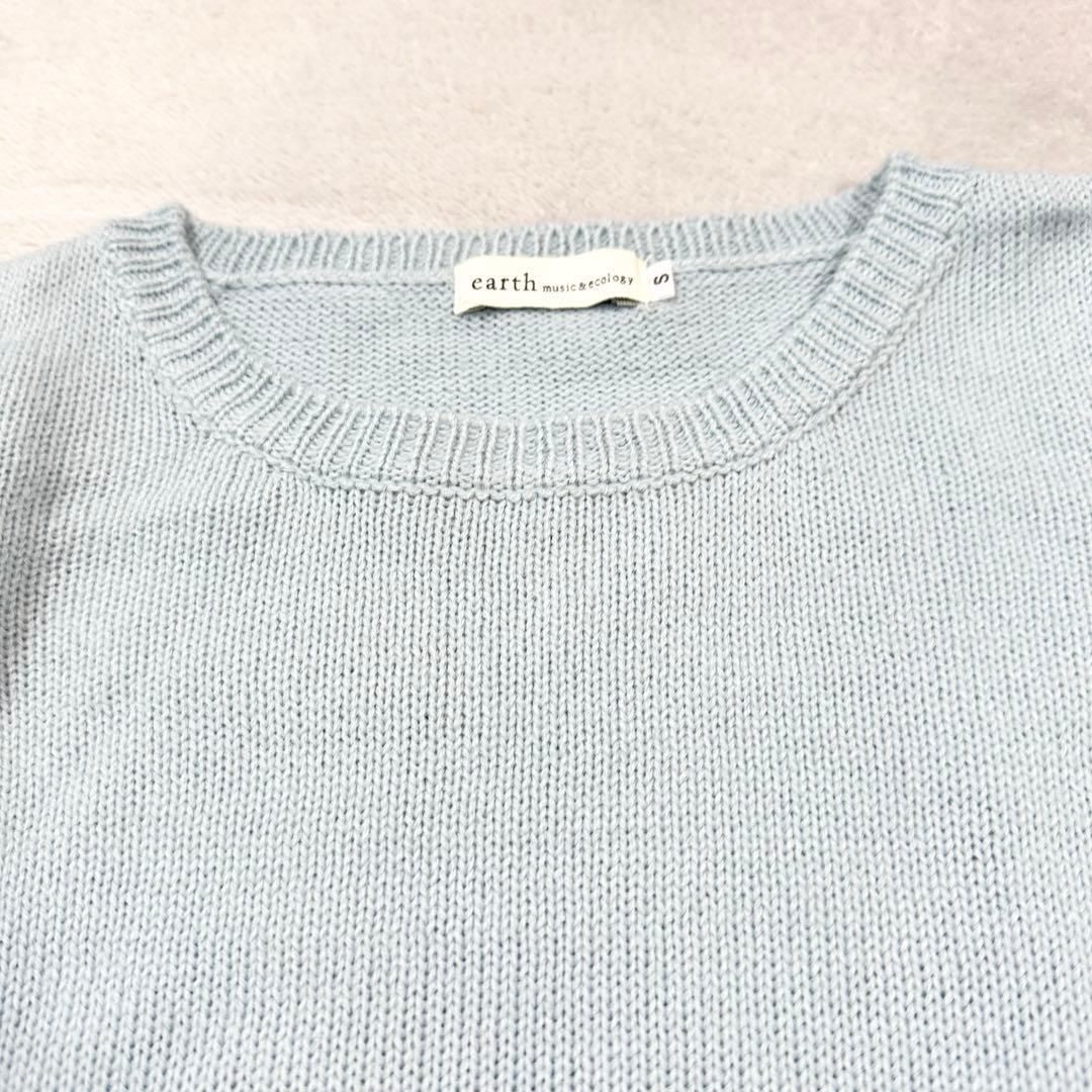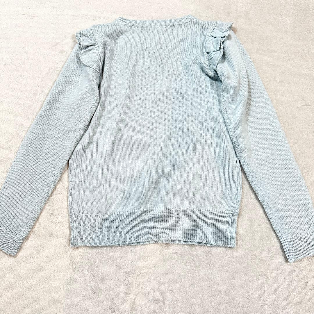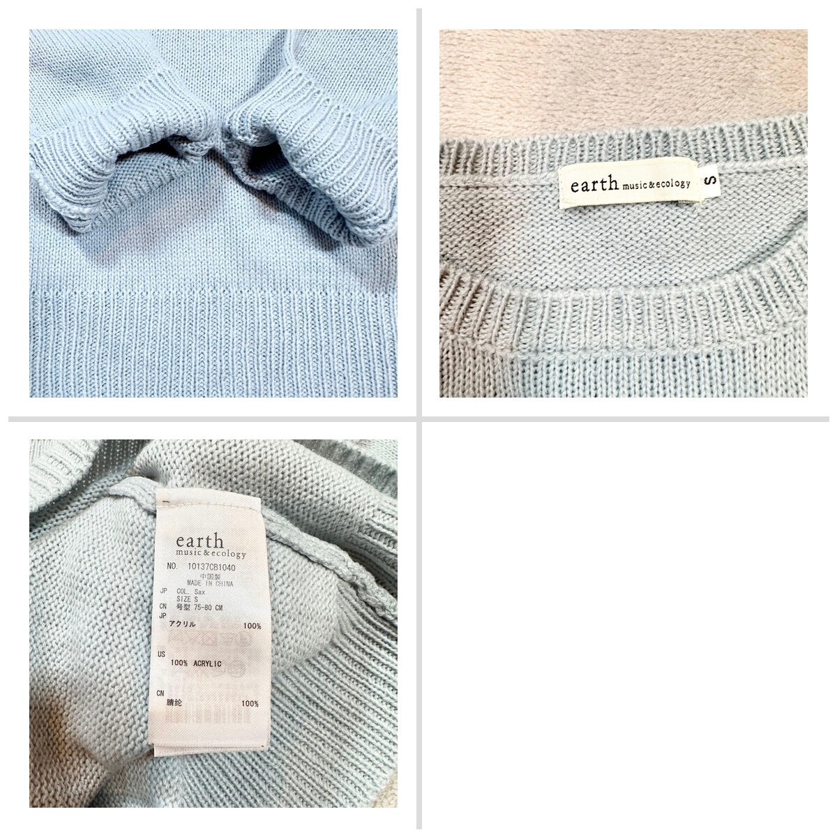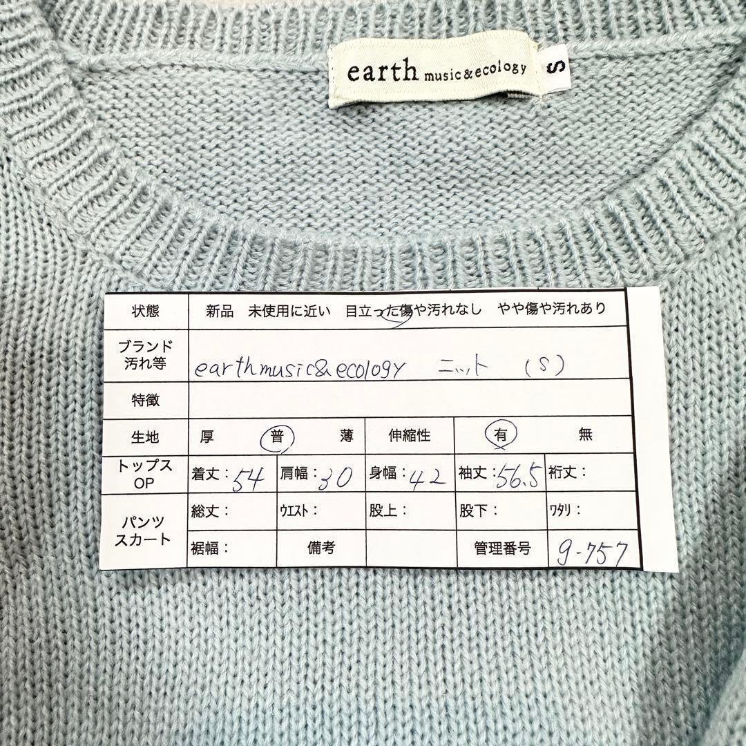 アースミュージック&エコロジー フリル付き長袖ニット フェミニン 上品 水色 S 398EB1