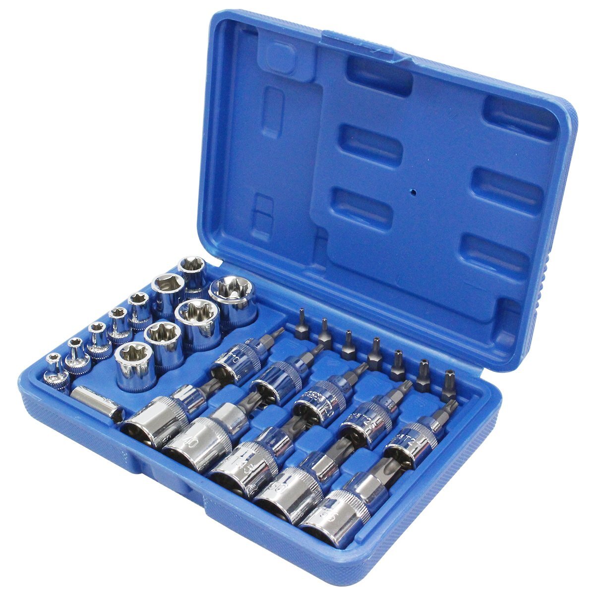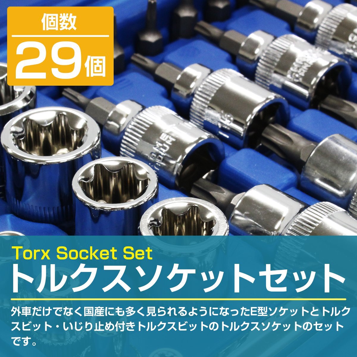 E型トルクスソケット/トルクスビット(いじり止め付き) セット 29個 9.5mm 6.3mm クロムバナジウム鋼 工具 修理 DIY 日曜大工
