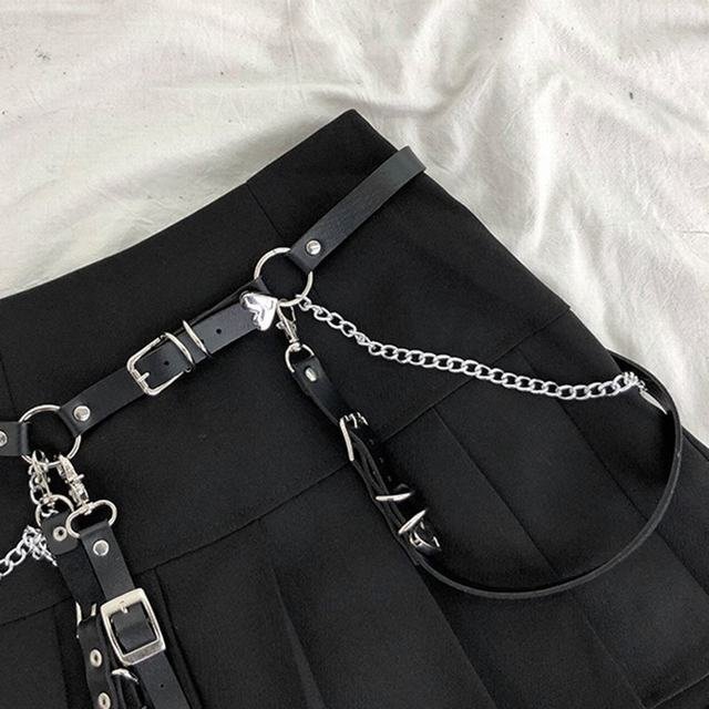 フェイクレザーとチェーンでクールなのに ハートデザインの金具がとてもキュート