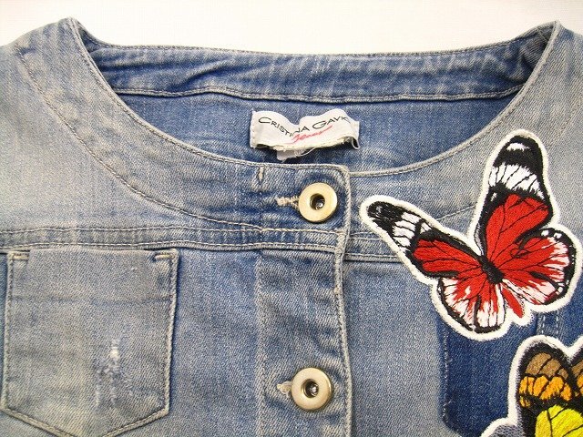 | CRISTINA GAVIOU/クリスティーナ ガヴィオリ 蝶々刺繍 デニムジャケット ダメージ加工 レディース ブルー | ||||||||||||||||||||||||