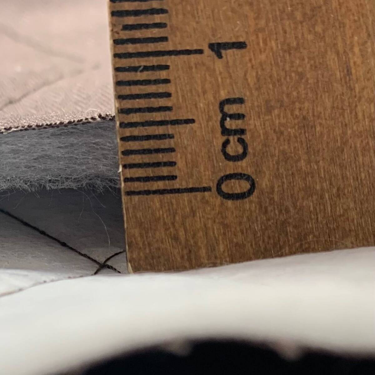ワタはややふんわりしており、表地がややハリ感のあるしっかりした生地感の生地かと思います。
