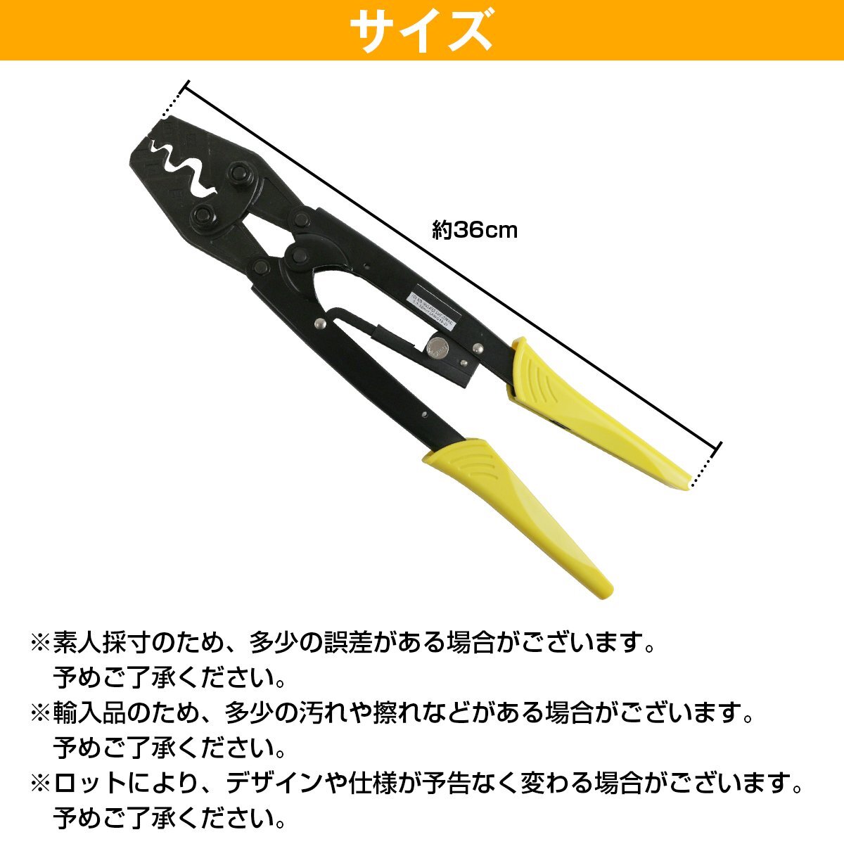 ・圧着工具の使用範囲は5.5mm2-38mm2まで!5サイズに対応しています。