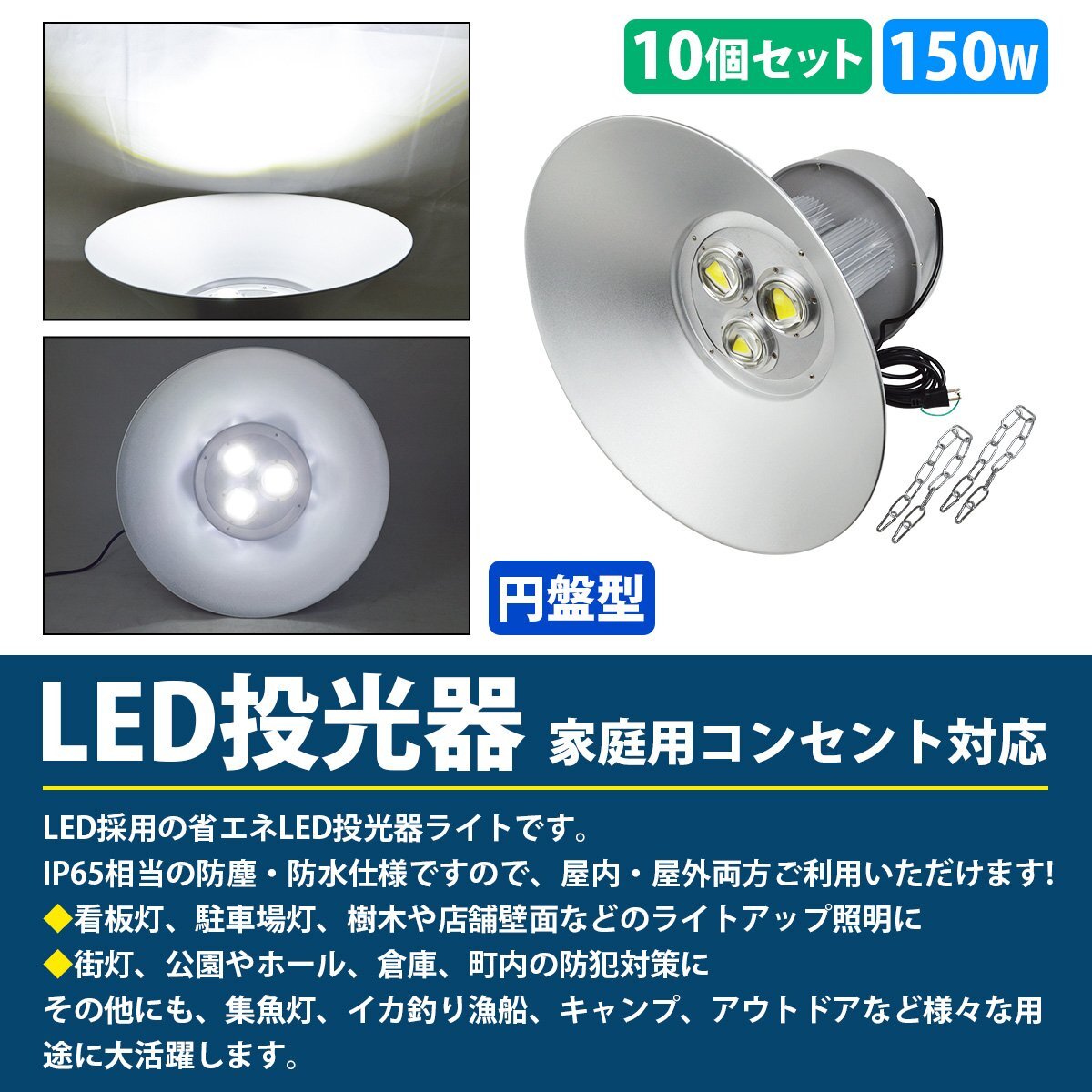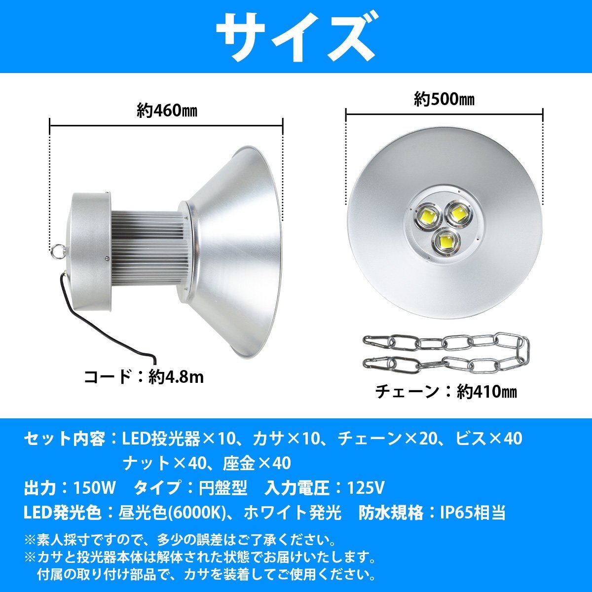 『吊り下げ照明』 水銀灯タイプ LEDだから超省エネ! 投光器 150W AC100V 5m 10個セット ホワイト 白発光 作業灯 倉庫 駐車場 照明