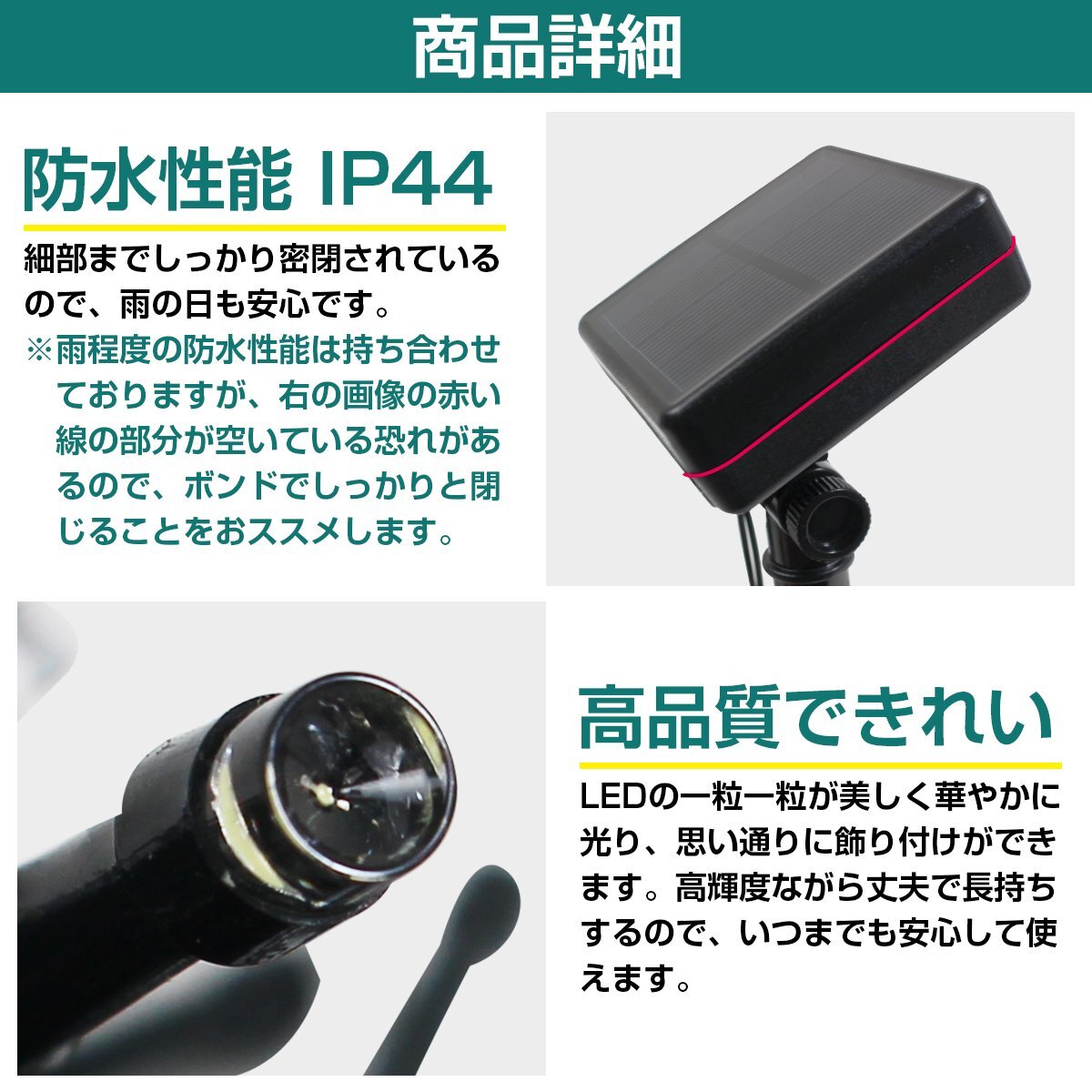ストリングライト LEDイルミネーション ソーラー充電式 200球 21M 防水IP44 照明 クリスマス 屋外 ツリー 飾り ワイヤーライト
