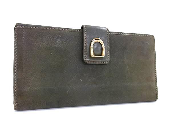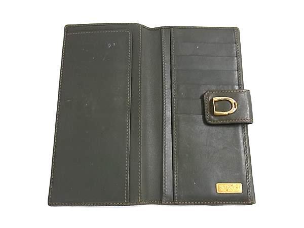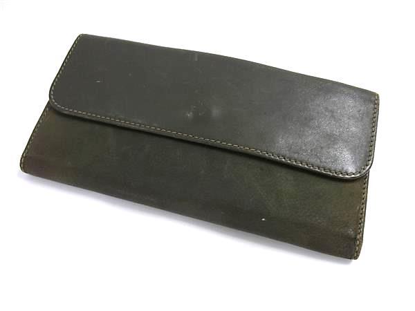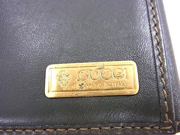 1円 GUCCI オールドグッチ ヴィンテージ レザー 二つ折り 長財布 ウォレット 小銭入れ 札入れ カード入れ カーキ系 FS7947