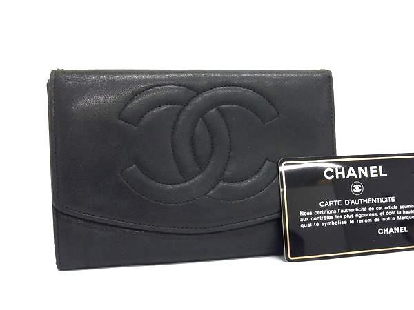 1円 CHANEL シャネル ココマーク ラムスキン 二つ折り 財布 ウォレット 小銭入れ レディース ブラック系 FV1958