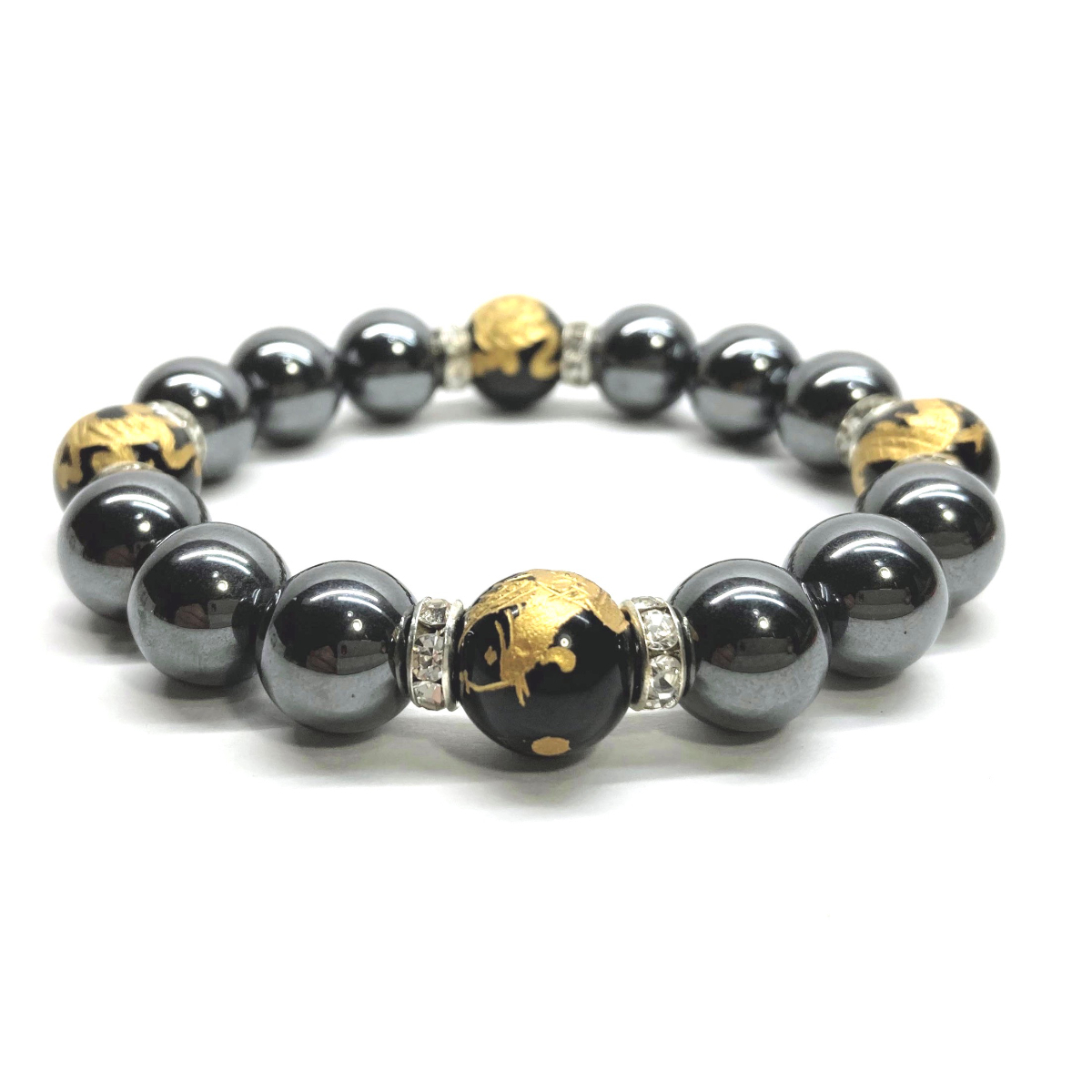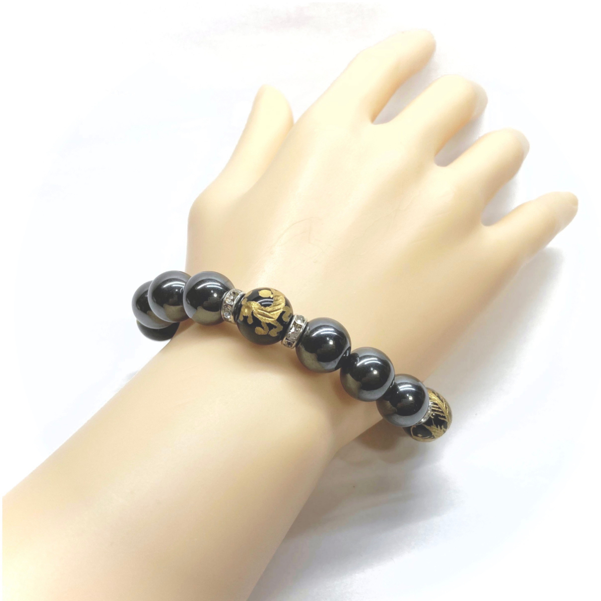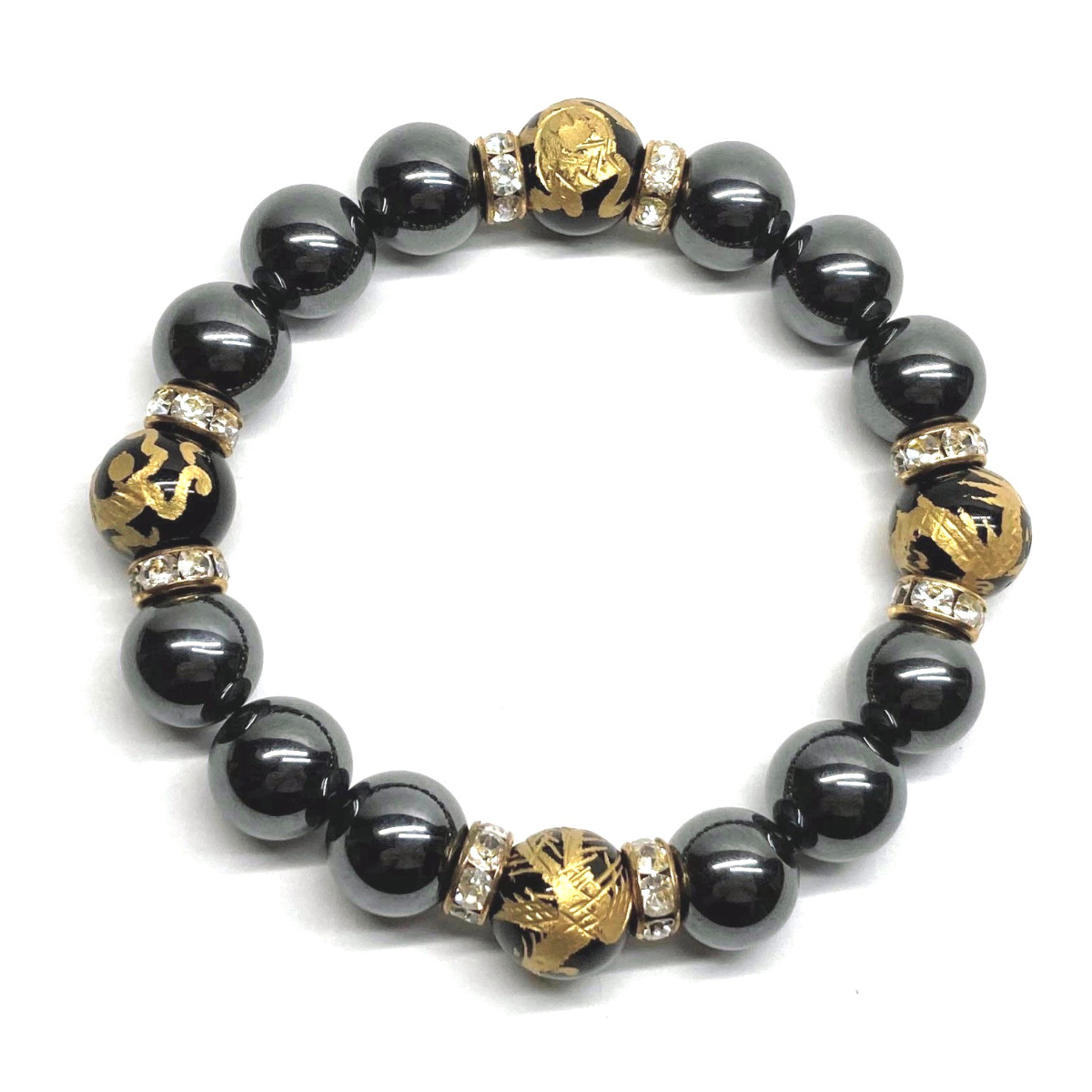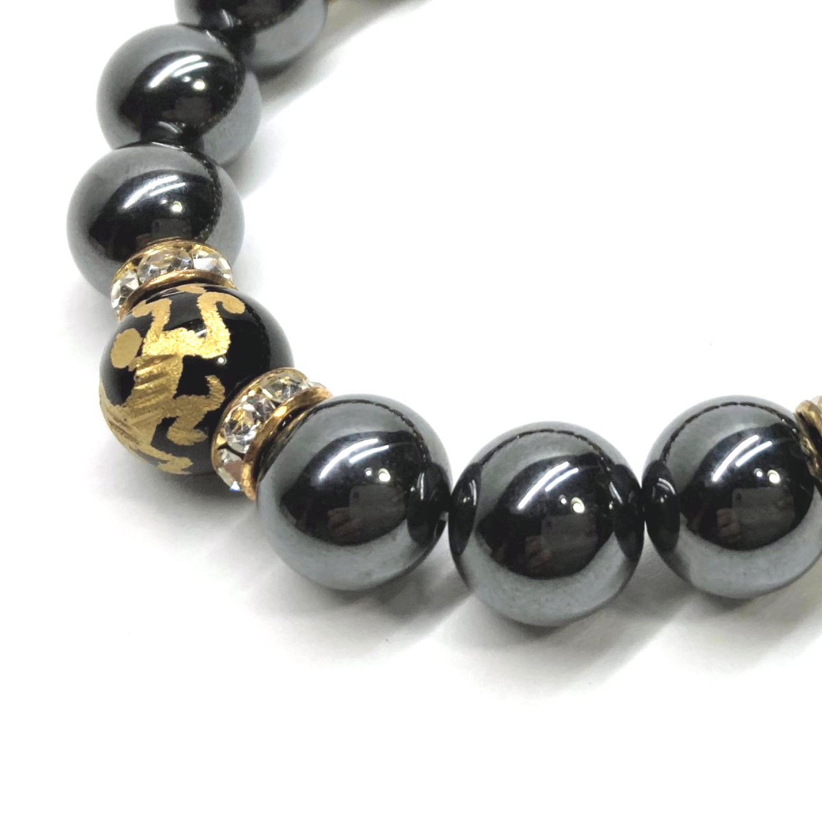 四神獣金彫オニキス×ヘマタイト 12mm パワーストーン ブレスレット天然石 青龍 白虎 玄武 朱雀 運気上昇 開運 金運 お守り 四神相応 S