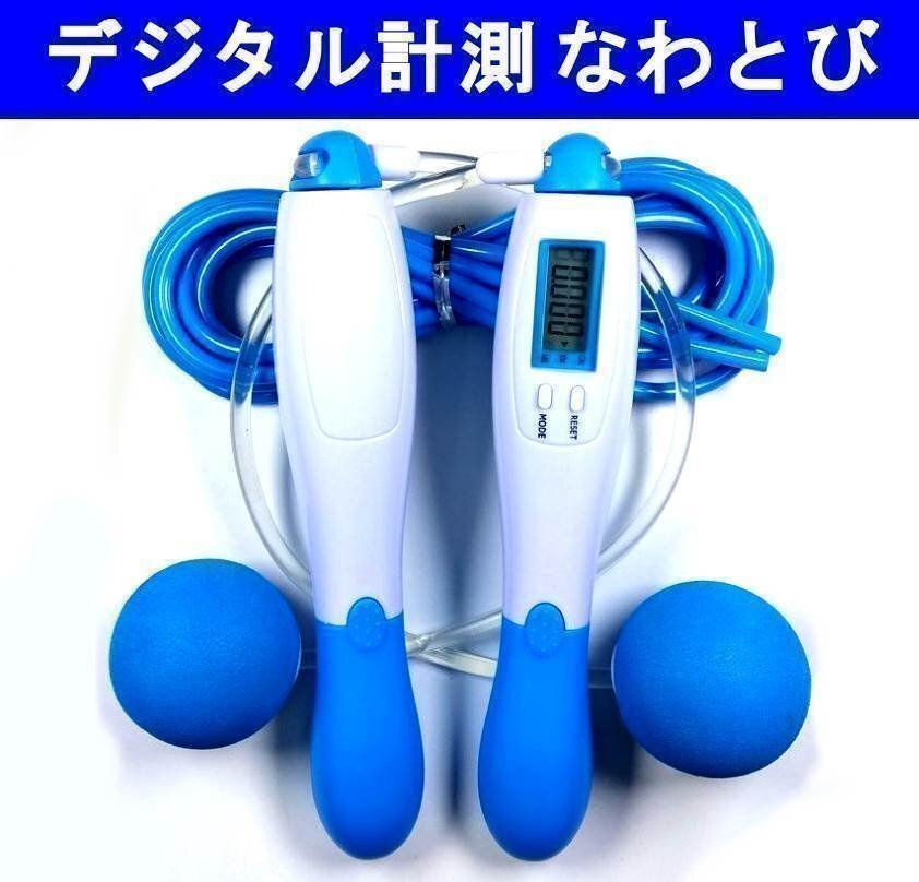 送料0円 縄なし なわとび デジタル 計測機能搭載 [ブルー] エア縄跳び用ボール付 カロリー 測定 タイマー エクササイズ トレーニング