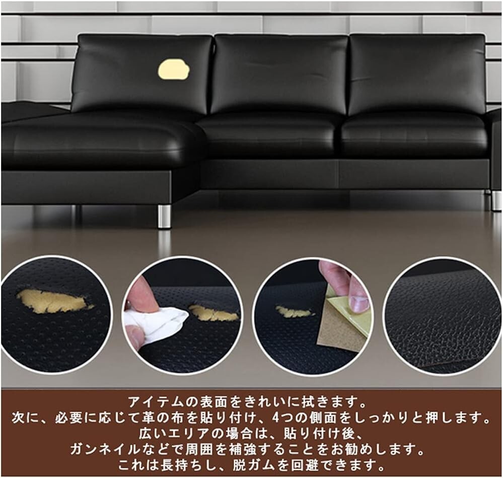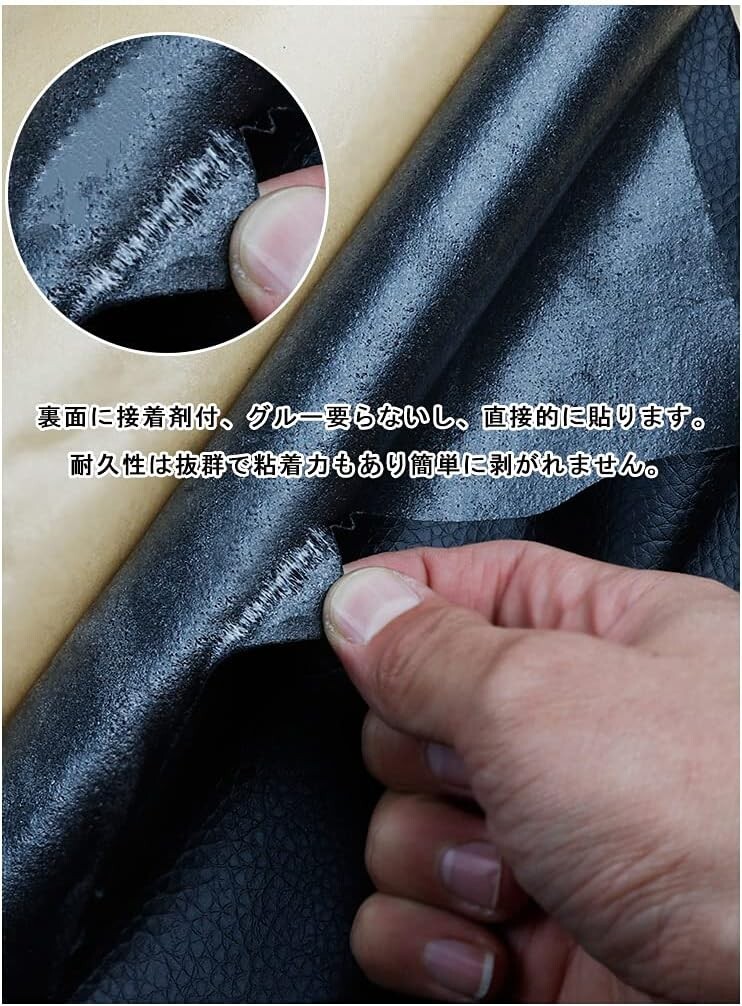 自分で簡単に貼れる、接着剤付きの合皮補修シートです。