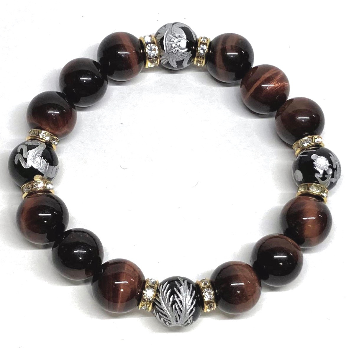 こちらは、四神獣銀彫オニキとレッドタイガーアイを組み合わせたパワーストーンブレスレットです。四神獣は、中国の伝説で4つの方向(東西南北)を守護する神聖な神。四神獣、厄災から身を守り、多くの運気を呼び込むと言われております。石大きさは程よくインパクトのある12mm玉で内周 約17cmです。 数に限りがございますので気になる方はお早めにどうぞ。