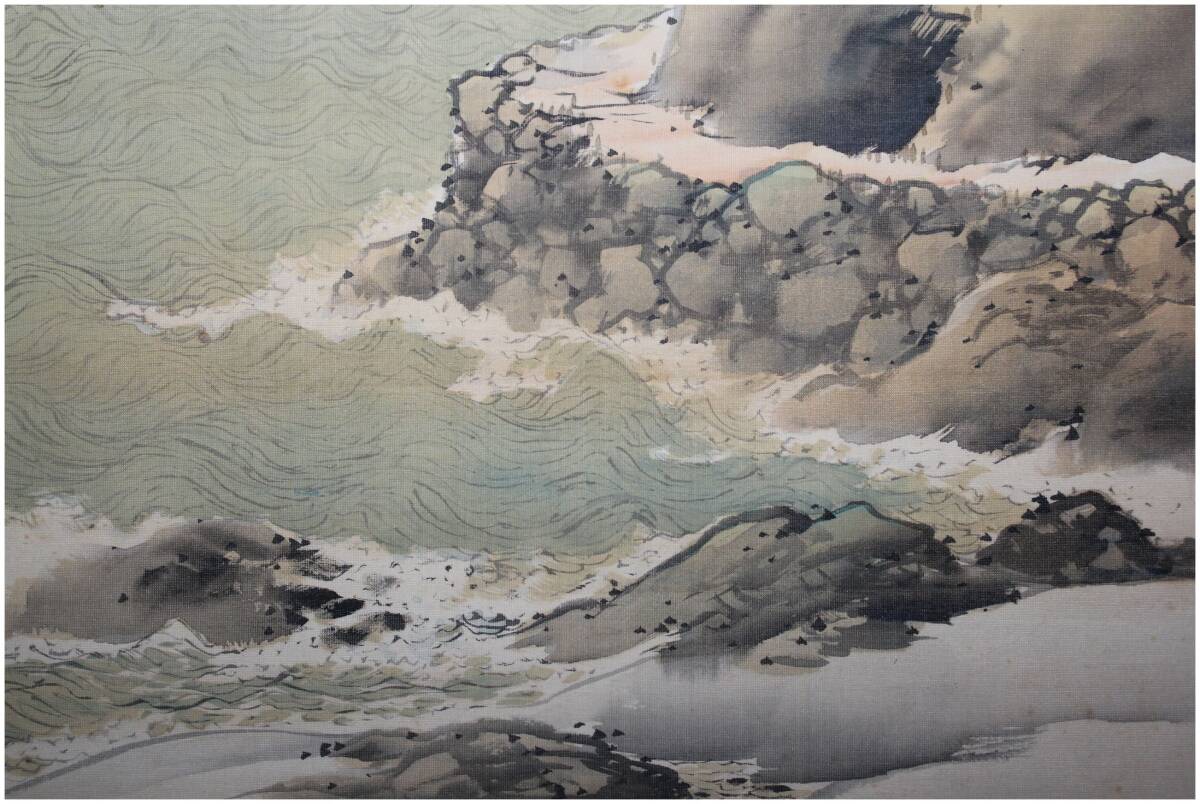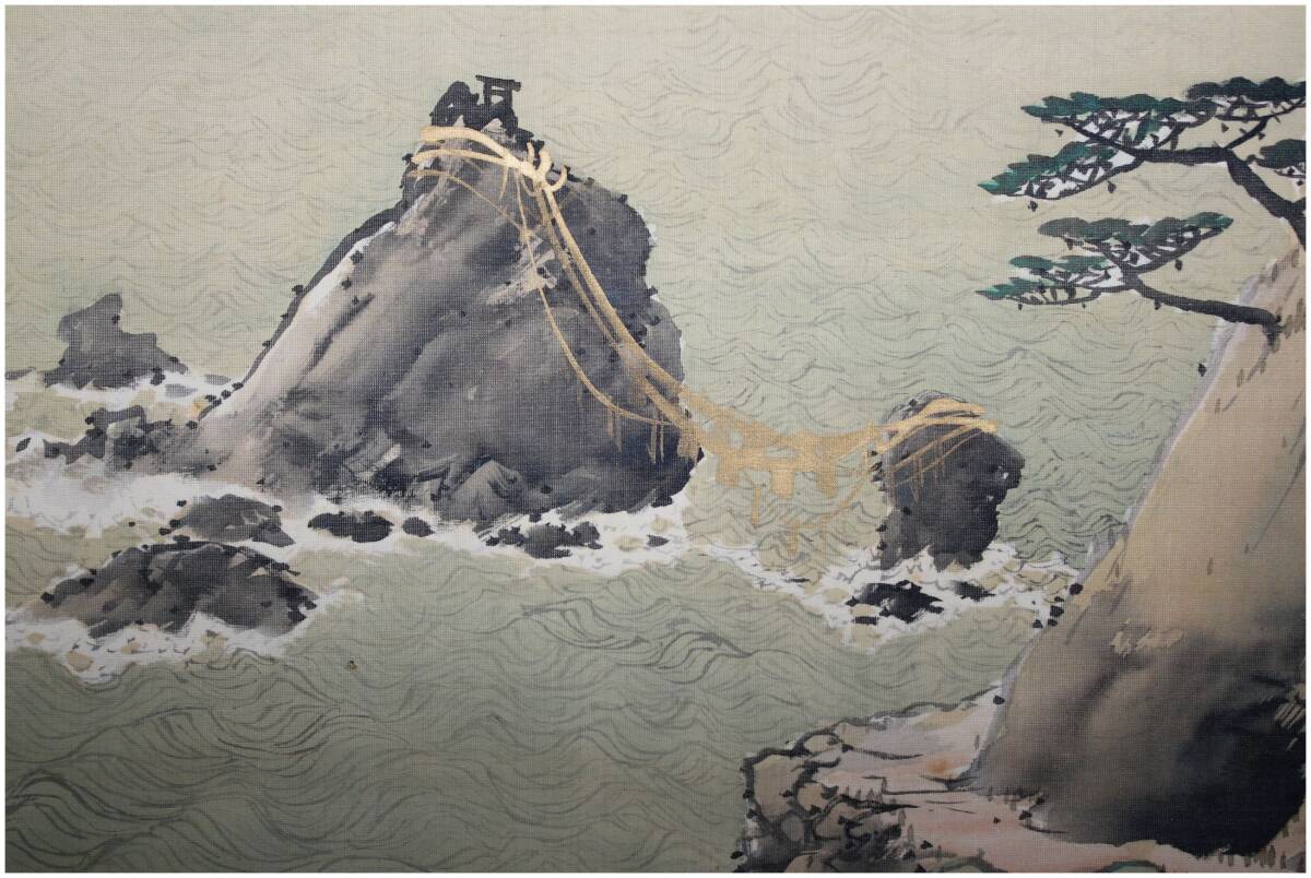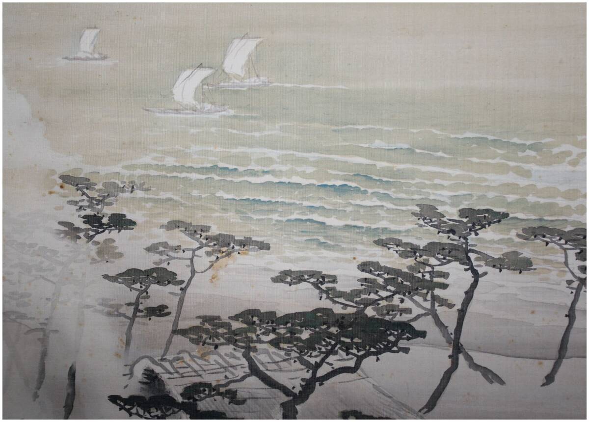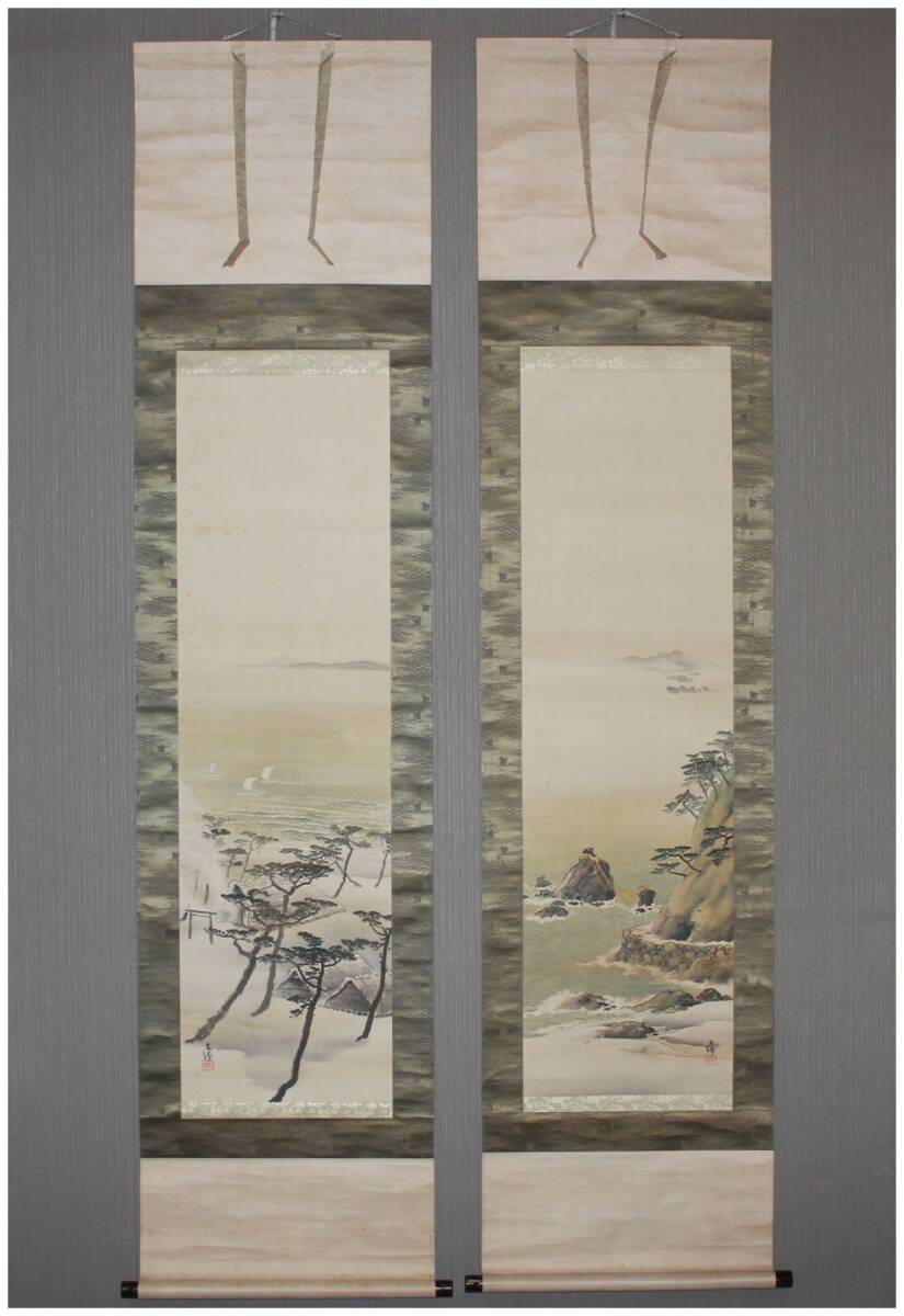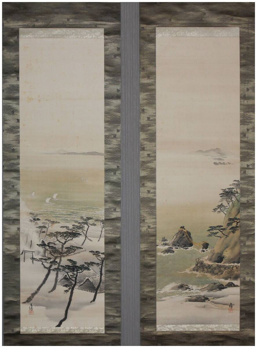 三重画家・【中村左洲】 立石御塩殿図 双幅 掛軸出品です