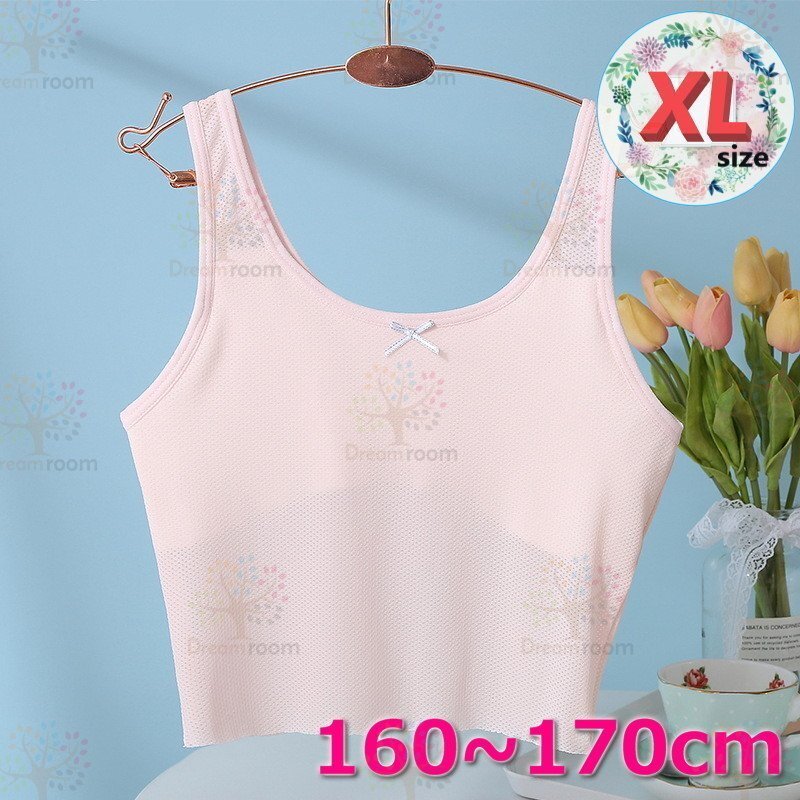 kids 通気性◎ タンクトップ ハーフブラ【XL】ピンク 160-170cm 夏 スポーツブラ 子供 ファーストブラジャーインナー K-405-01