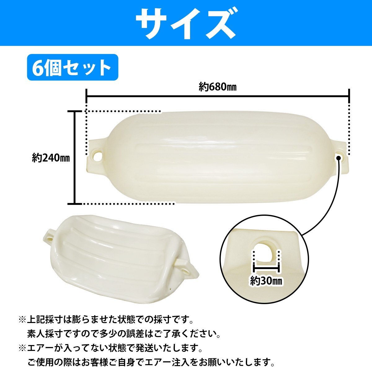 『6個セット』ボートフェンダー 680mm×240mm 25フィートから32フィートまで対応! 25ft 20ft 32ft 30ft … フロート 船 係留 ブイ 浮き