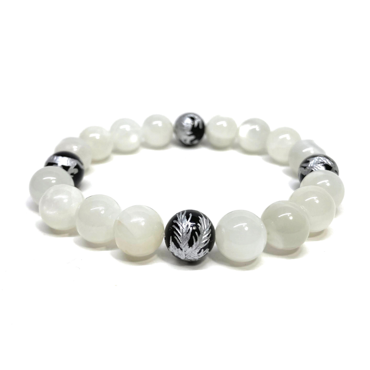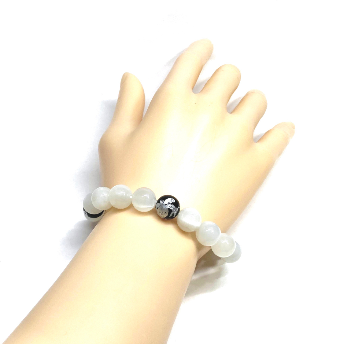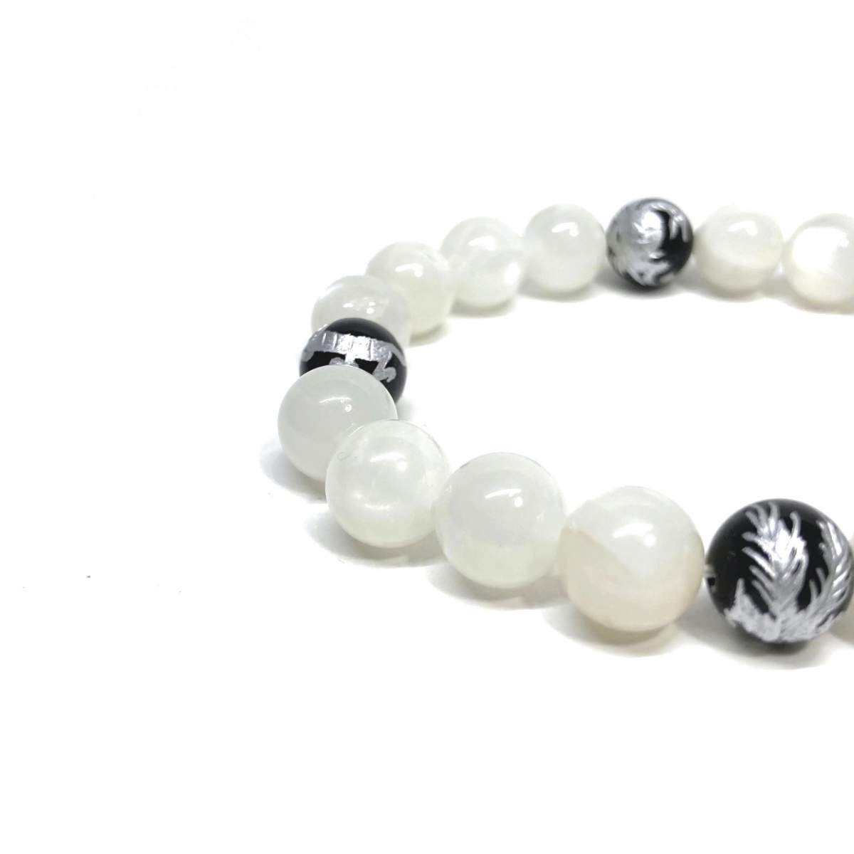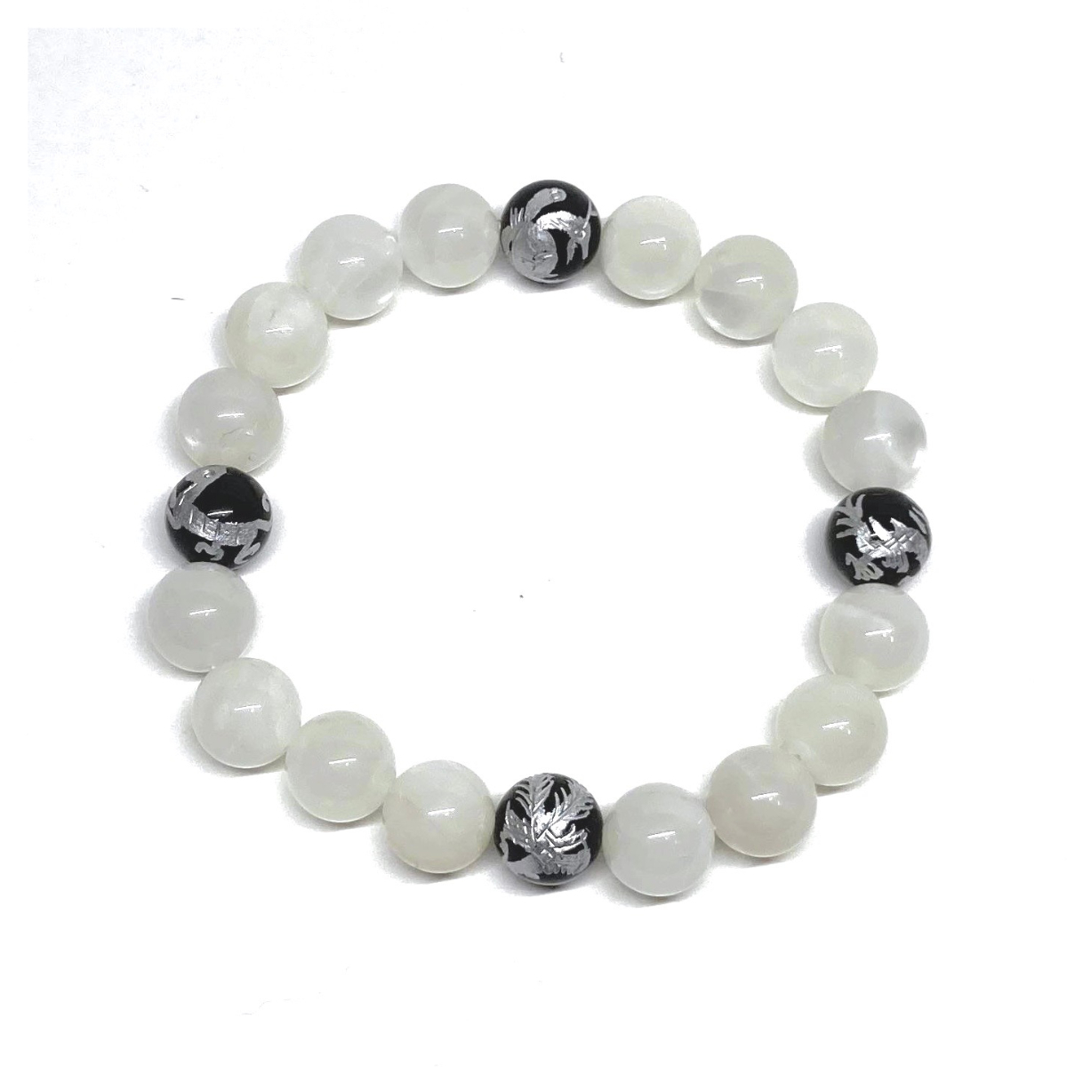 10mm 四神獣銀彫オニキス×ムーンストーン パワーストーン ブレスレット天然石 運気上昇 開運 幸運 恋愛運 青龍 白虎 玄武 朱雀 ☆