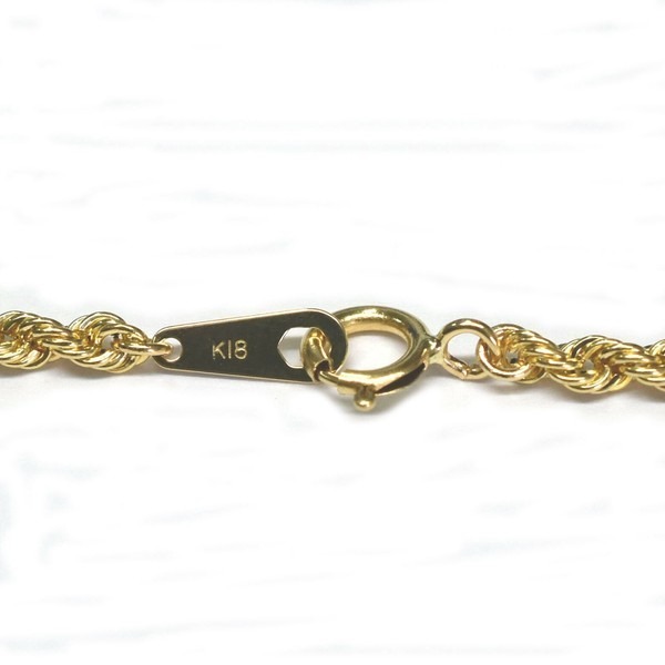 K18ならではの輝きと上質な作りは、大人の装いにぴったりです。シンプルかつ高級感のあるロープチェーンをお探しの方におすすめです。