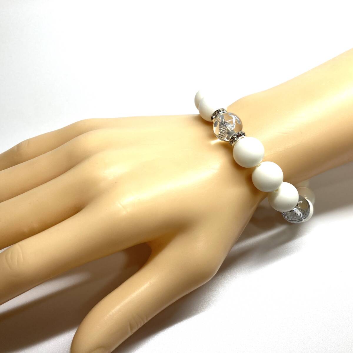 こちらは、四神獣銀彫水晶とホワイトオニキスを組み合わせたパワーストーンブレスレットです。四神獣は、中国の伝説で4つの方向(東西南北)を守護する神聖な神。四神獣、厄災から身を守り、多くの運気を呼び込むと言われております。石大きさは程よくインパクトのある12mm玉で内周 約17cmです。 数に限りがございますので気になる方はお早めにどうぞ。