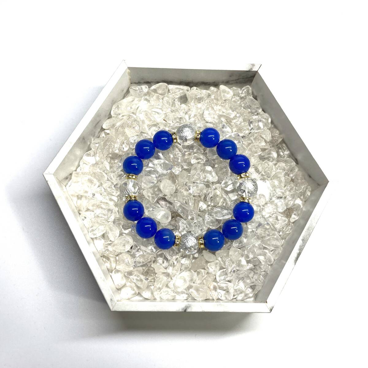 こちらは、四神獣銀彫水晶と青瑪瑙を組み合わせたパワーストーンブレスレットです。四神獣は、中国の伝説で4つの方向(東西南北)を守護する神聖な神。四神獣、厄災から身を守り、多くの運気を呼び込むと言われております。石大きさは程よくインパクトのある12mm玉で内周 約17cmです。 数に限りがございますので気になる方はお早めにどうぞ。