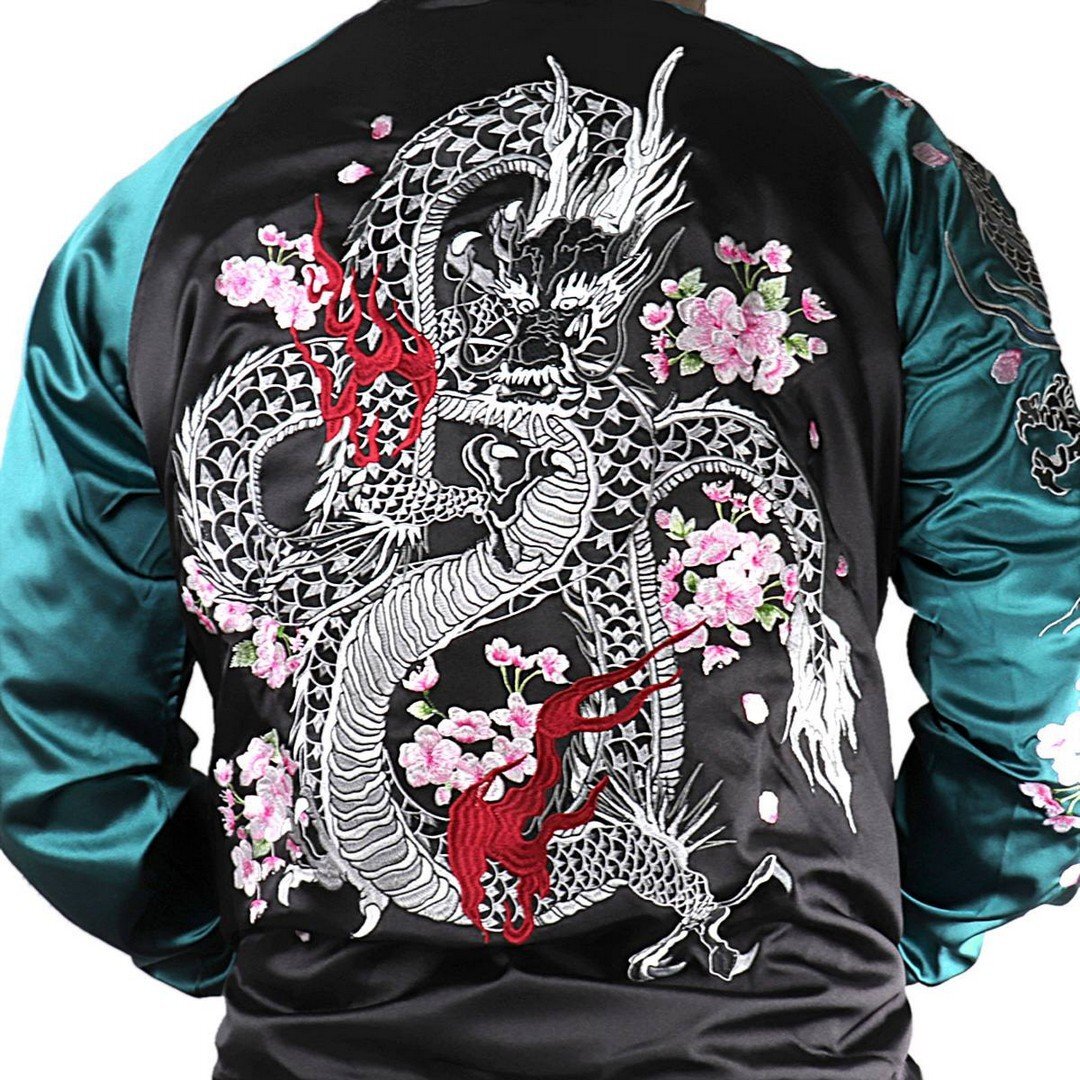 【CTskjnMBL】送料無料 スカジャン ブルー サイズ:M 龍 桜吹雪