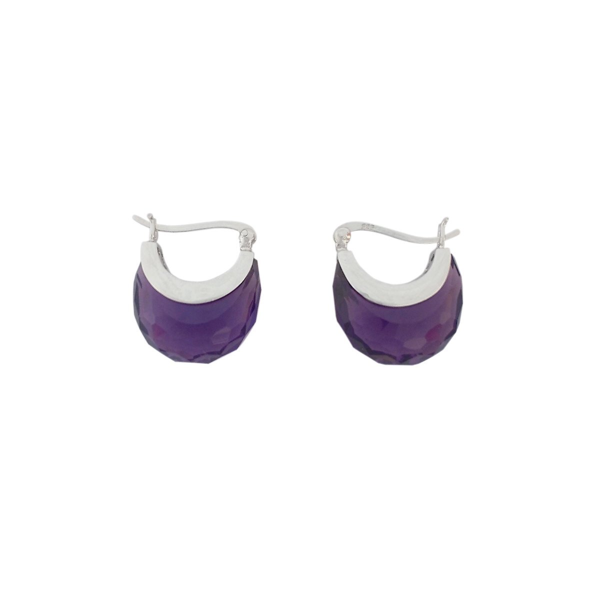 【C10131】送料無料 ピアス パープル シンプル 三日月 半月 レディース アクセサリー おおぶり 大きめ きれい ガラス クリア 透明