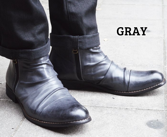 新品■ Wサイドジッパー ドレープブーツ Men's アンティーク ブーツ ショート丈 アンクル丈 メンズ キレイめ ビンテージ 男 靴 ze2789