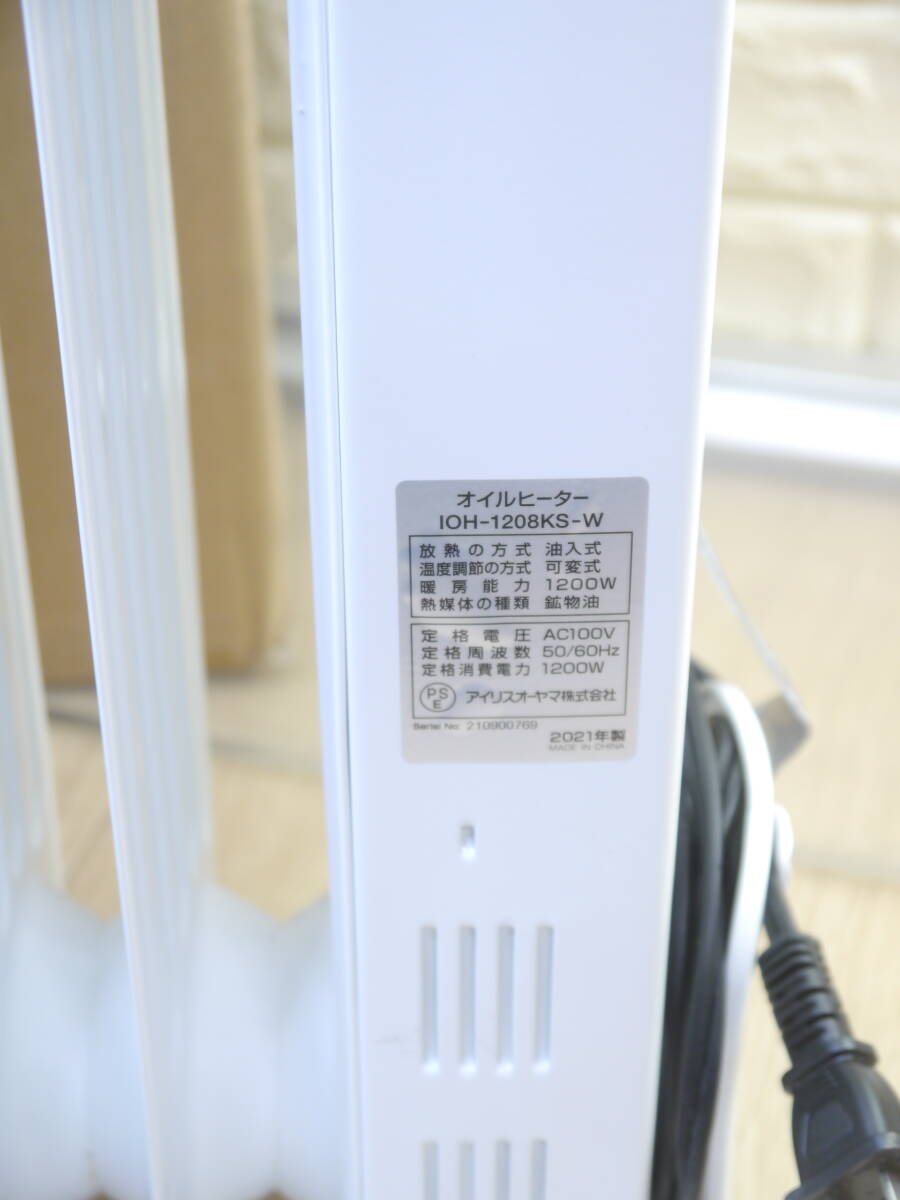 ◆2021年製◆8畳◆IRIS OHYAMA/アイリスオーヤマ オイルヒーター IOH-1208KS-W 暖房器具◆空気を汚さないクリーンな暖房 寝室 ペット 子供