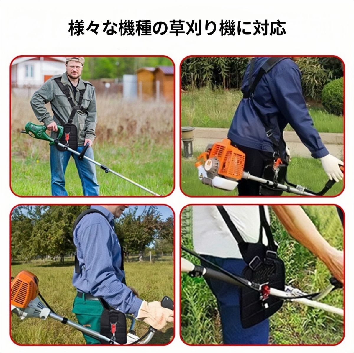 こちらの草刈り機ベルトは、多様な草刈り機に対応しており、ご家庭の草刈り機に簡単に装着できます。高品質なオックスフォード生地を採用し、長期間使用しても劣化しにくく、耐久性に優れています。さらに、通気性が高く、長時間の使用でも蒸れにくい快適な作りとなっています。