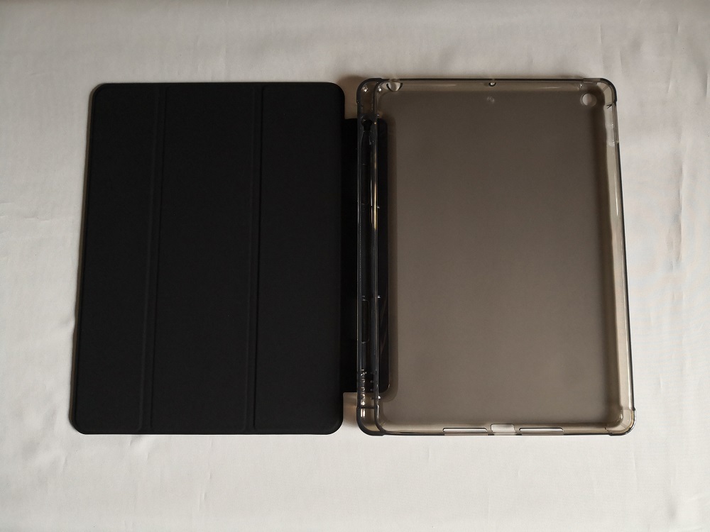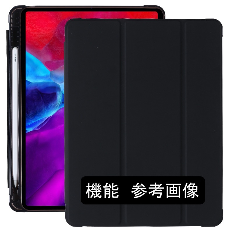 (ペン収納OK) iPad 7世代/8世代/9世代 10.2インチ 兼用 ブラック レザー スマートケース(ソフト素材) スタンド機能 オートスリープ機能付