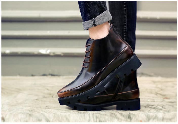 サイドジッパー付き メンズ ビジネス レザー シューズ ブラウン 26.5㎝ 革靴 靴 カジュアル 屈曲性 通勤 軽量 インポート品【n138】