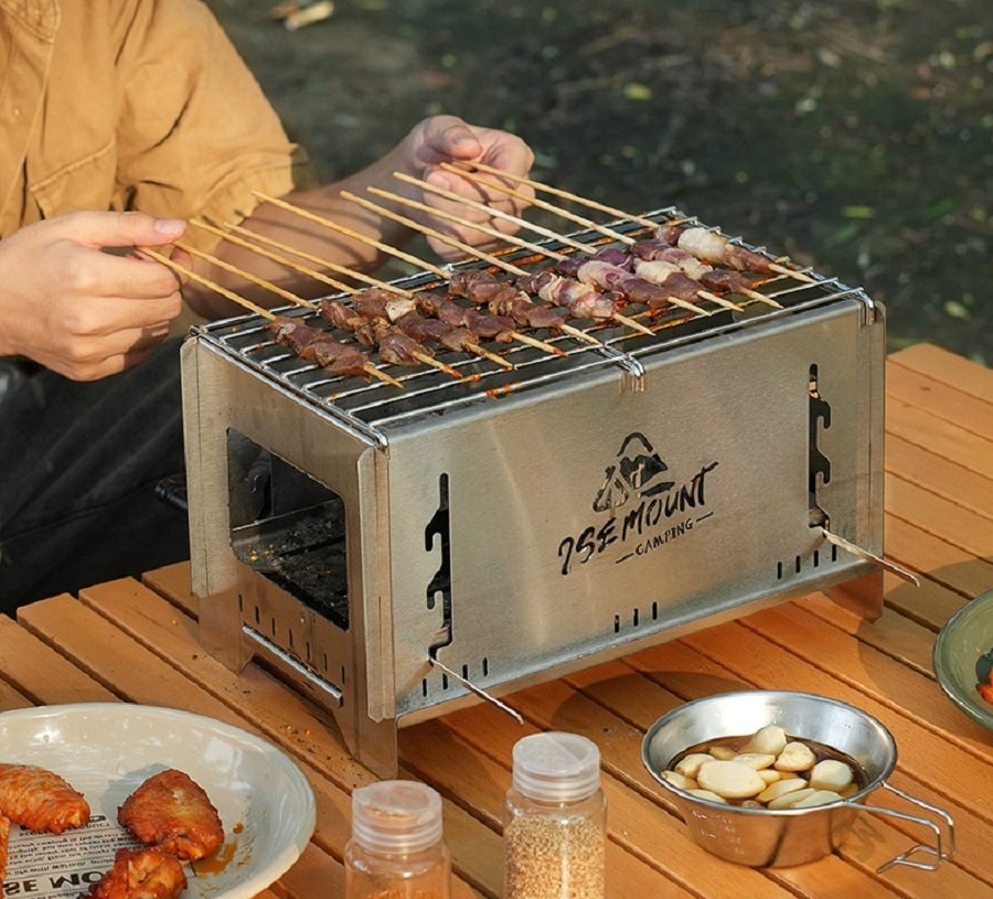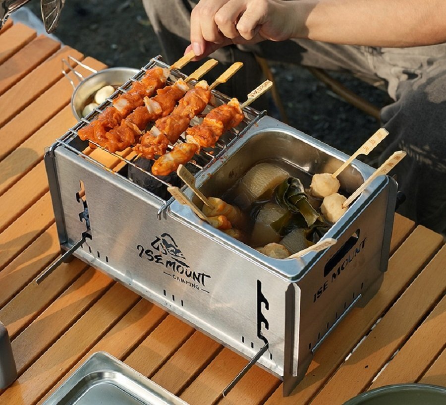 超高品質バーベキューコンロ おでん鍋 卓上BBQ組立式ステンレス製炭グリルポータブル キャップ アウトドア 3kg 収納付き 19.5×32.5×18.4m
